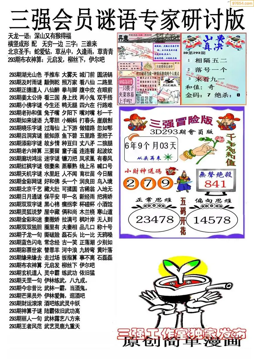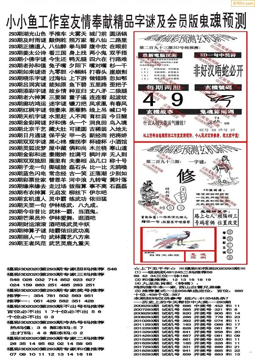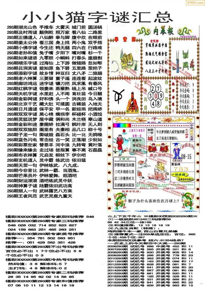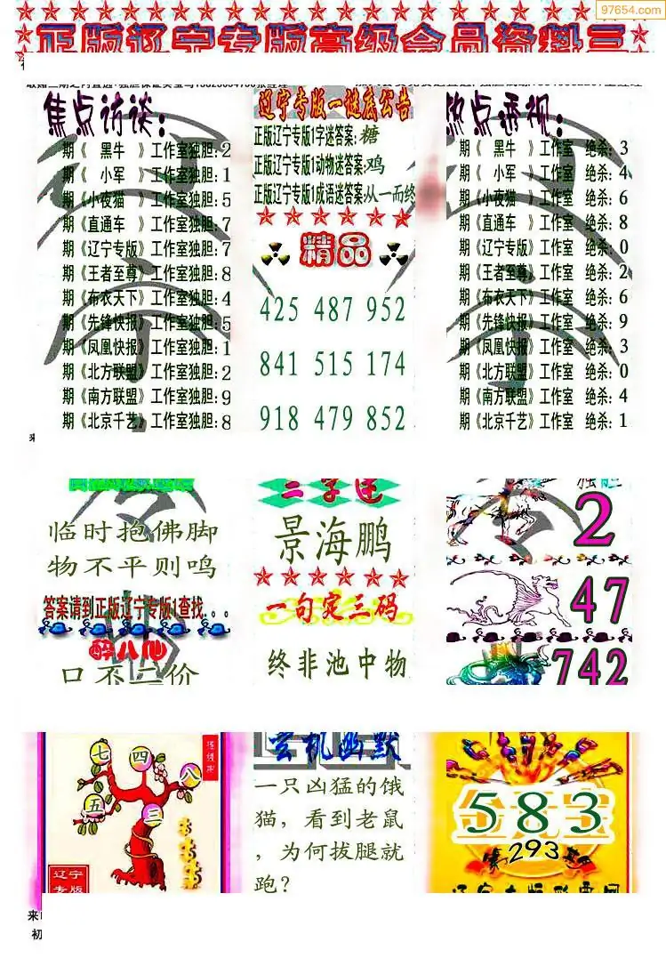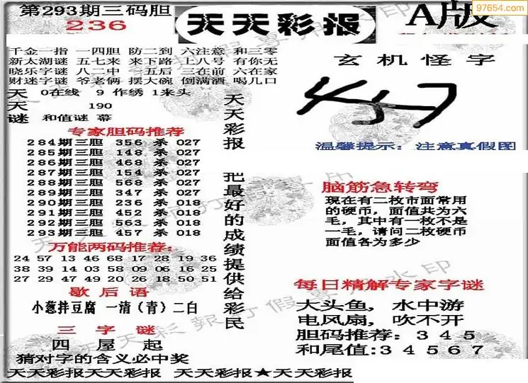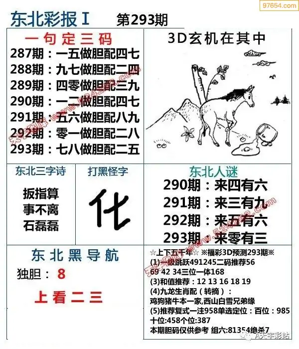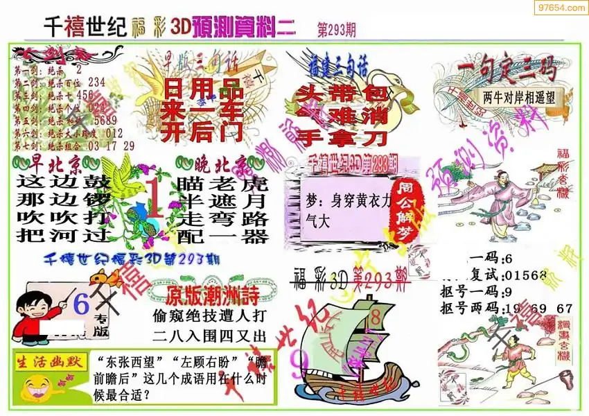 25年293期3d选号彩报图谜画谜