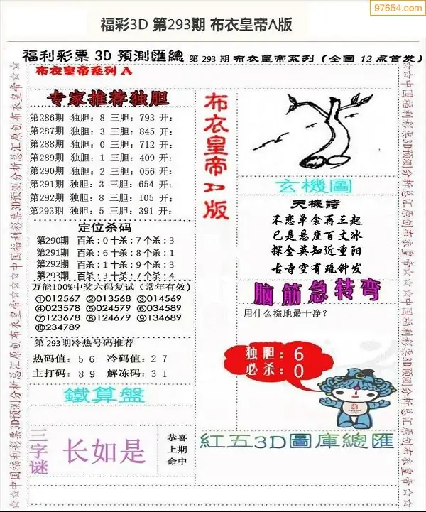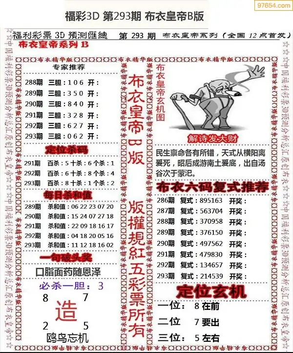 福彩293期3d真精华布衣+布衣早报(转载)
