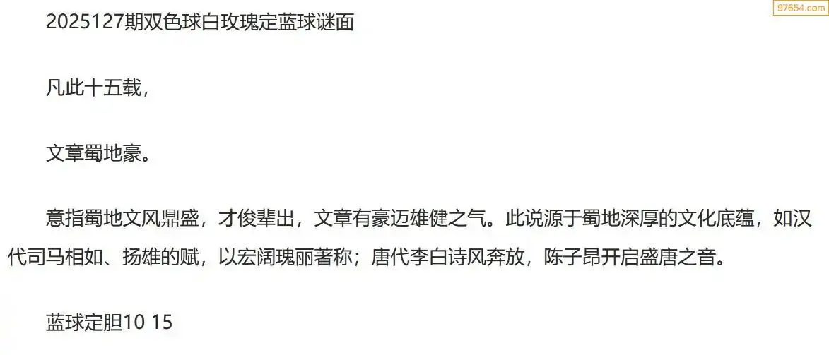 127期牛彩双色球字迷诗迷汇总(天中整理)