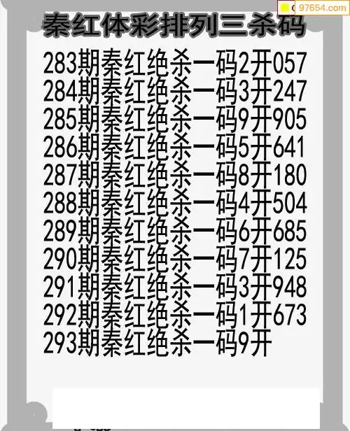 25年293期秦红体彩P3杀码图谜