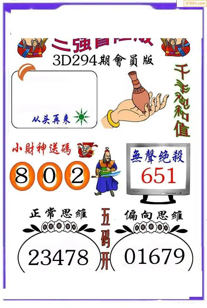 25年294期财神说彩3D综合图(原创)