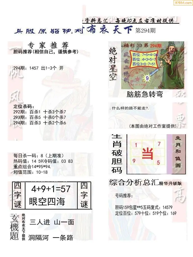福彩294期3d真精华布衣+布衣早报(转载)