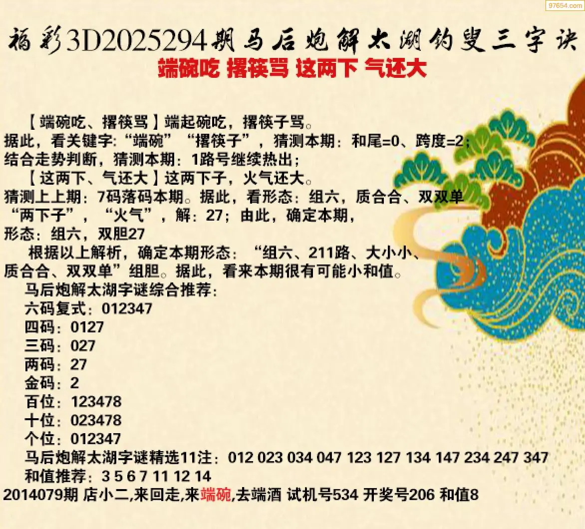 25年294期马后炮解3d太湖钓叟之 这两下
