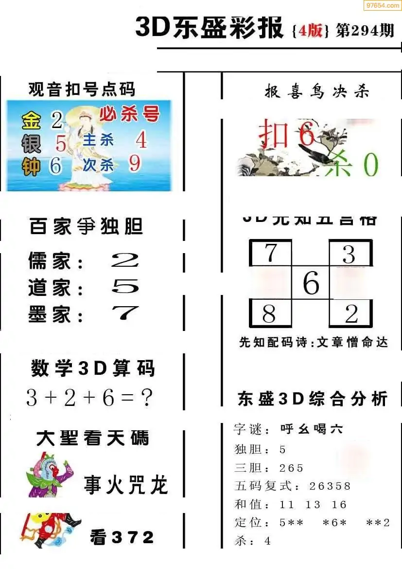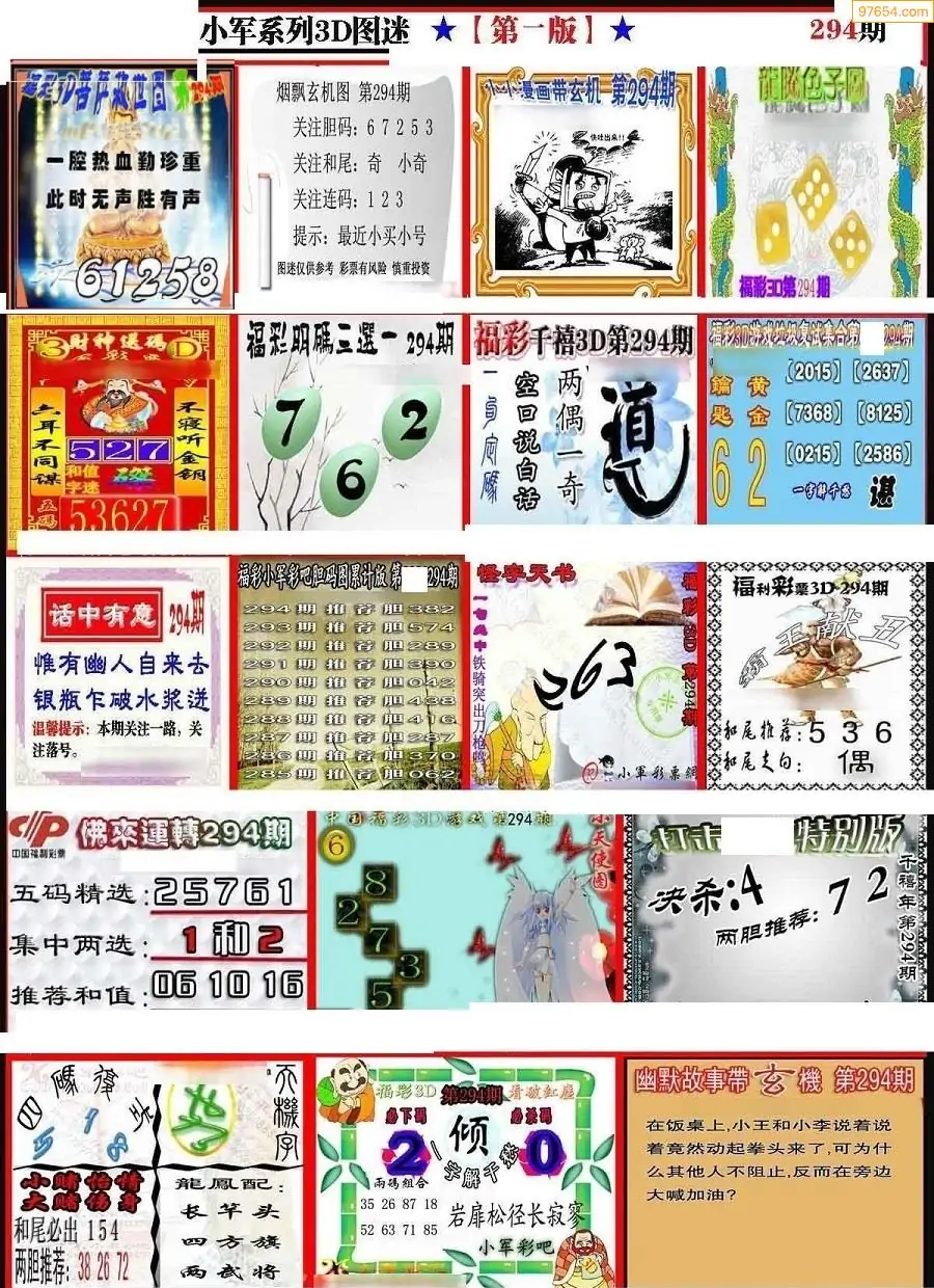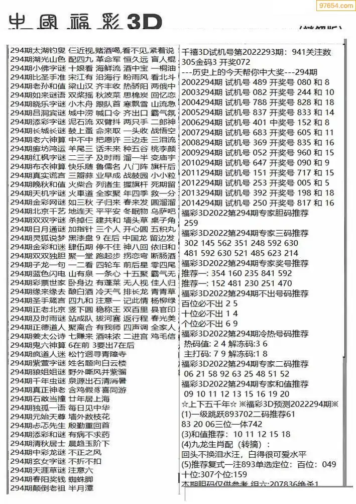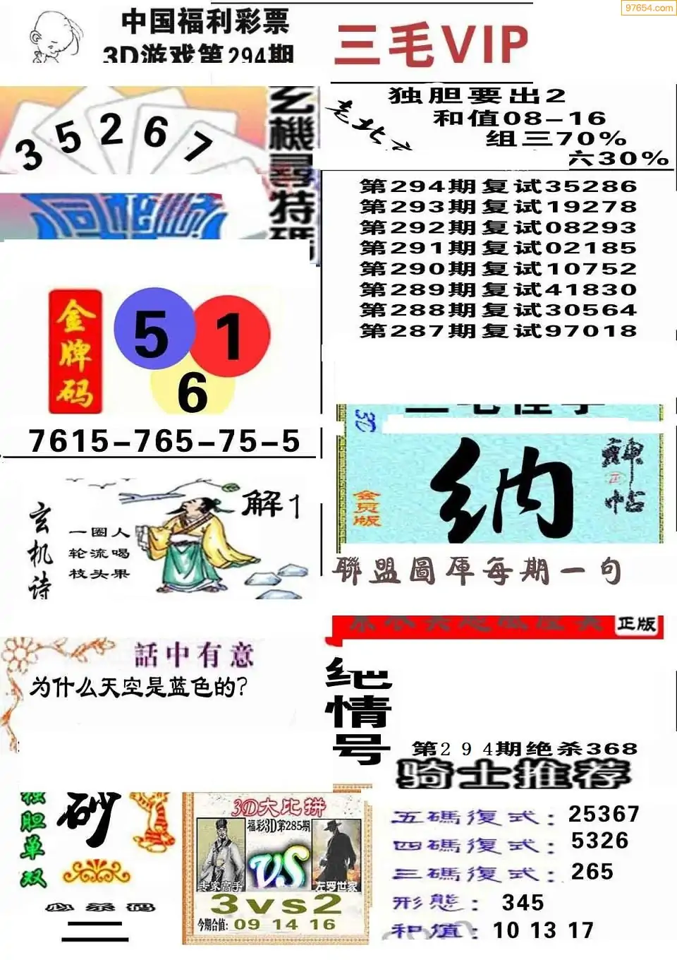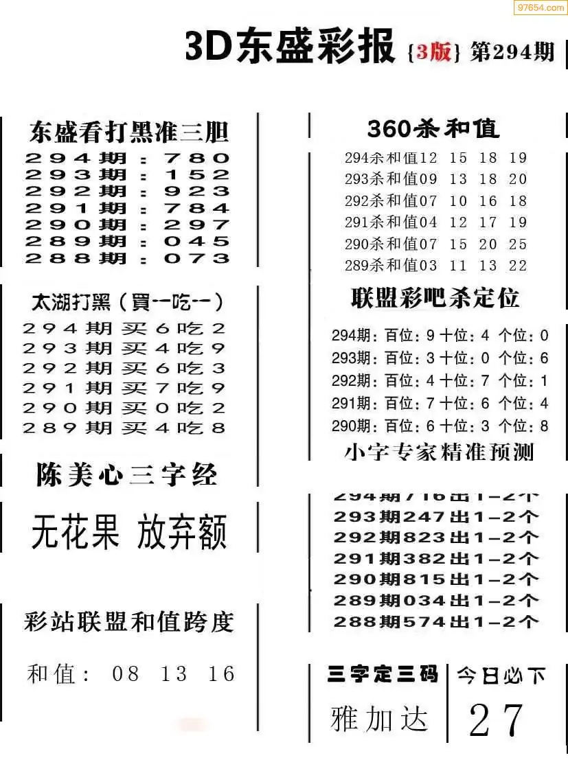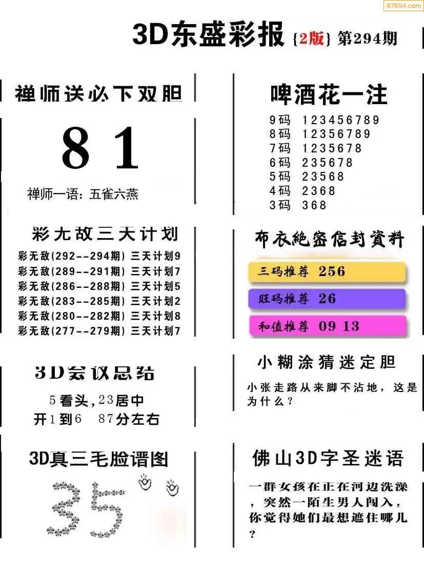 (8)25年294期今日3d各类彩报汇总