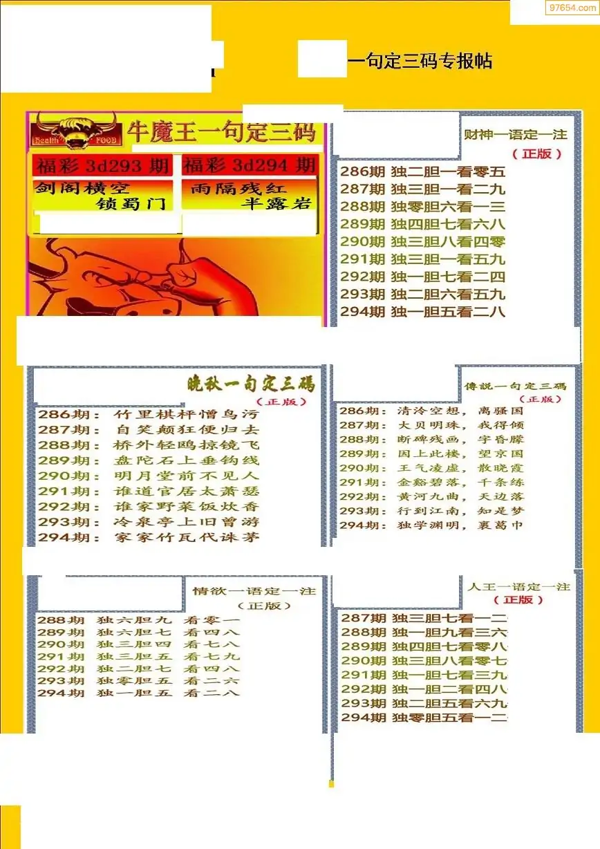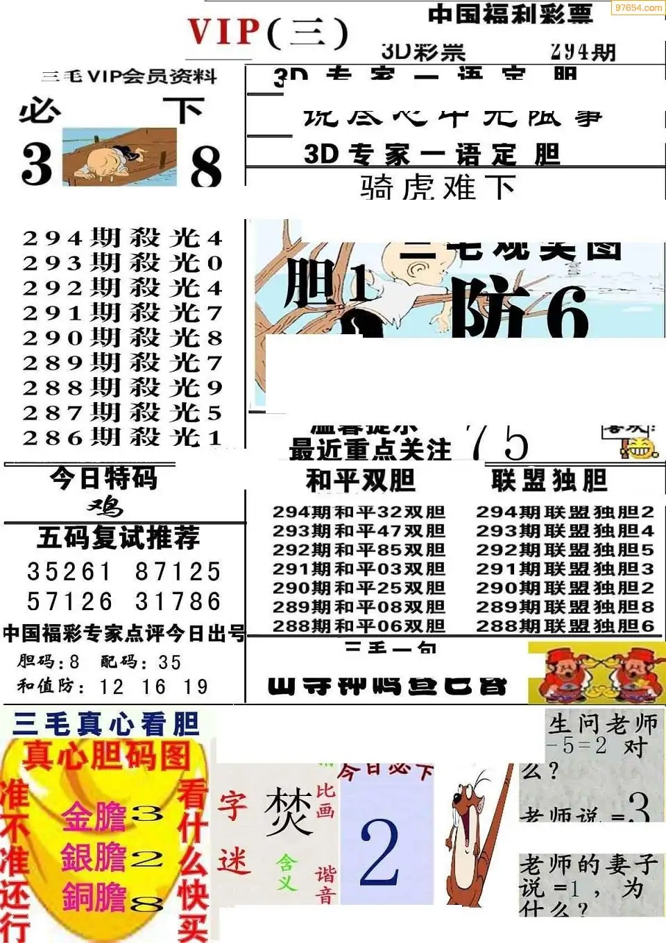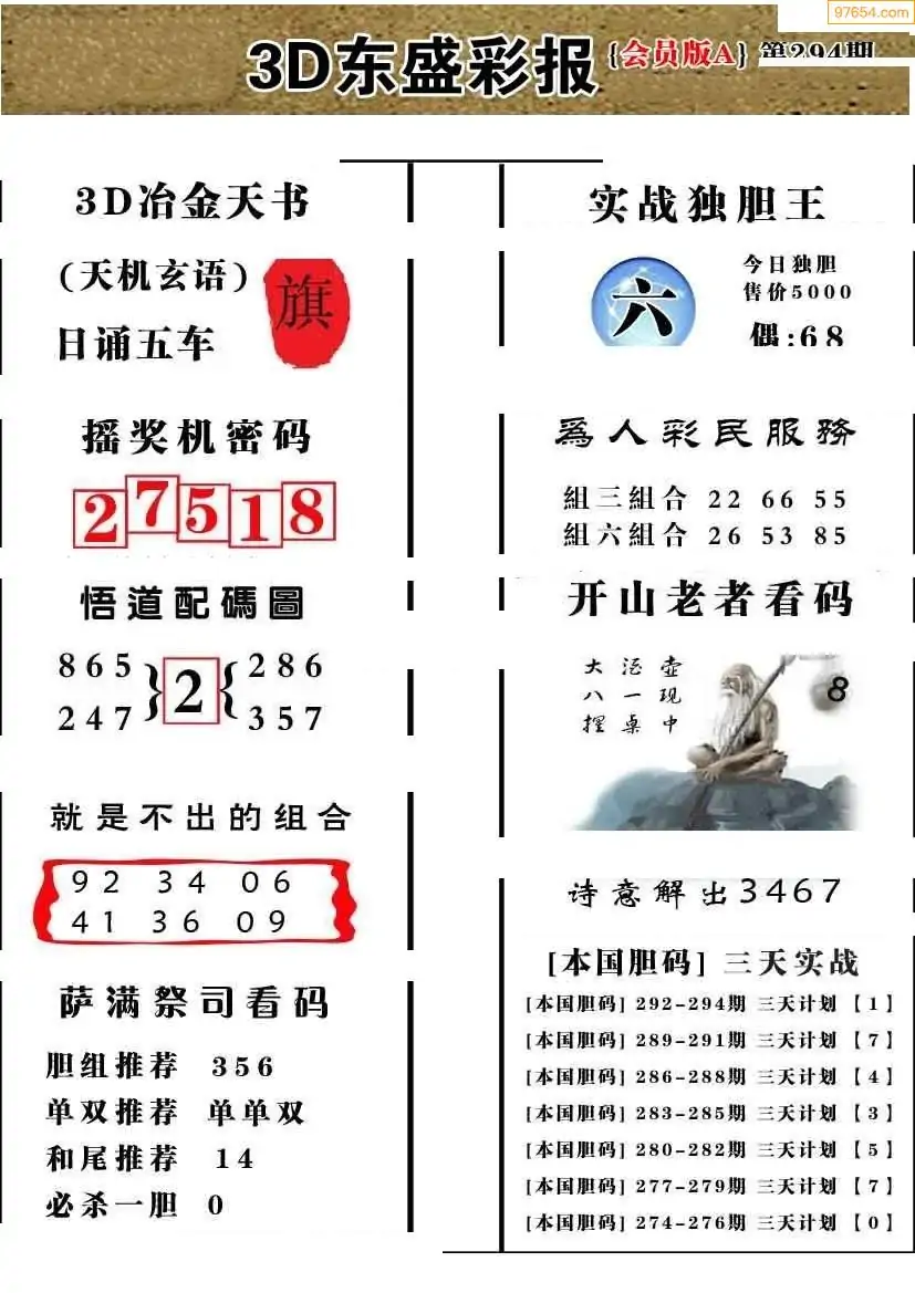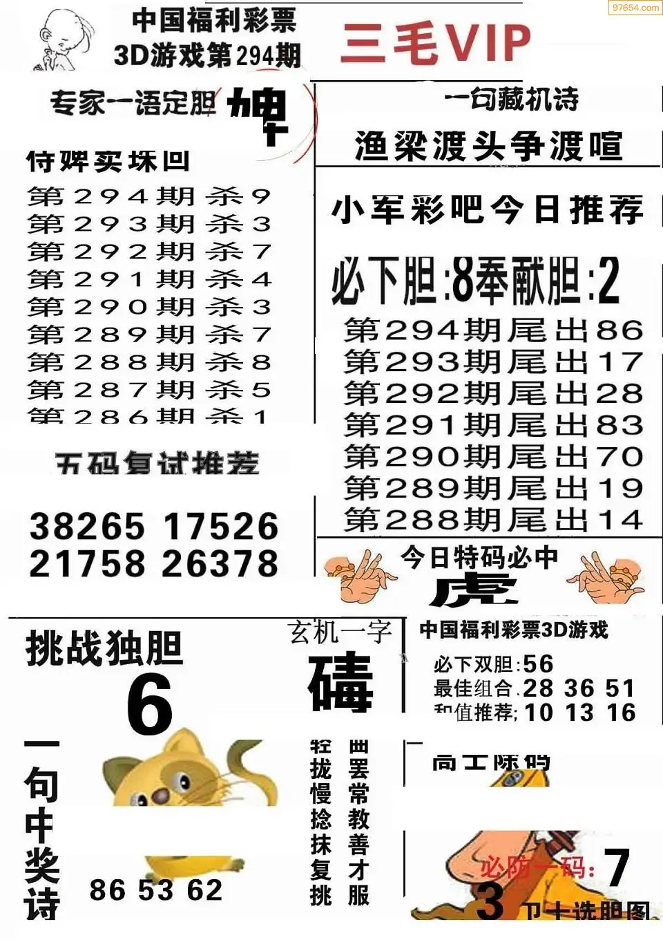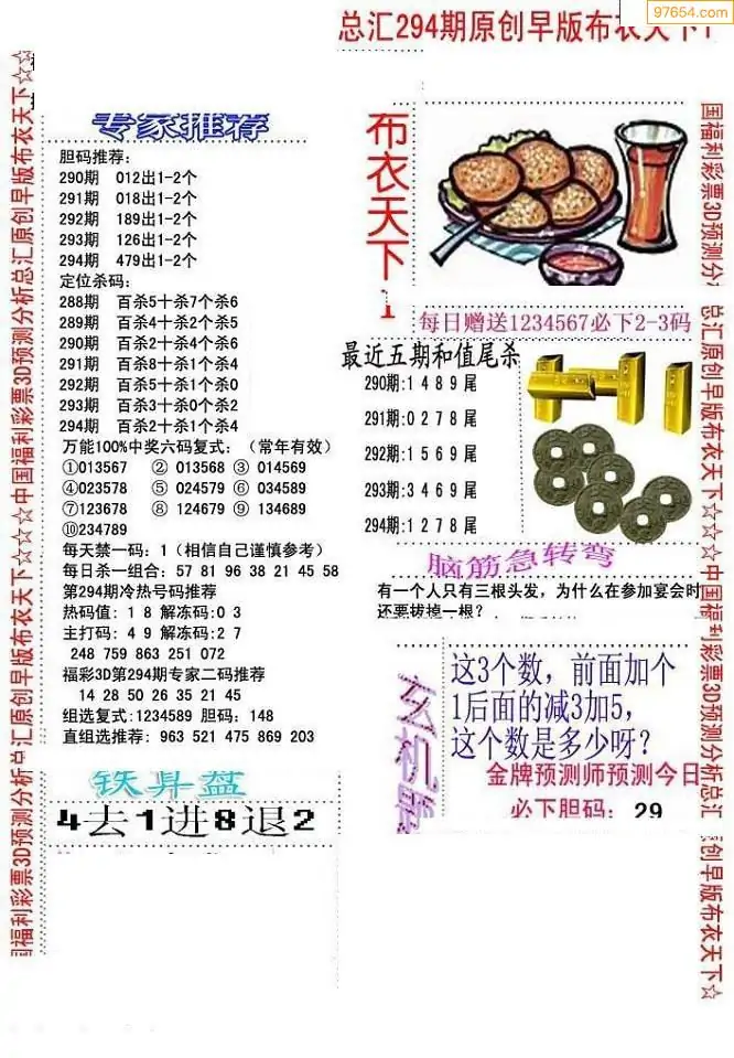 (8)25年294期今日3d各类彩报汇总