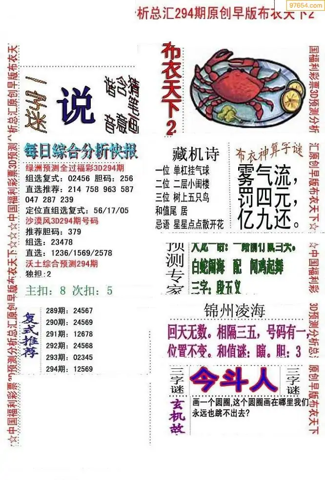 (5)25年294期福彩字谜图谜总汇
