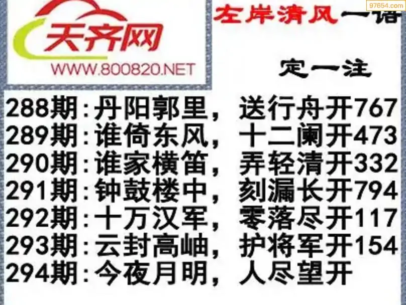 福彩3d左岸清风25年294期一语定一注