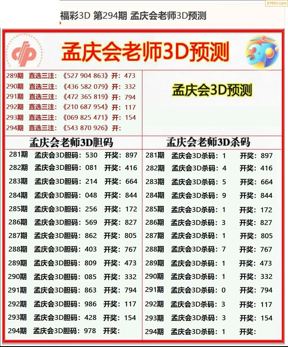 25年294期今晚孟庆会推3D胆码