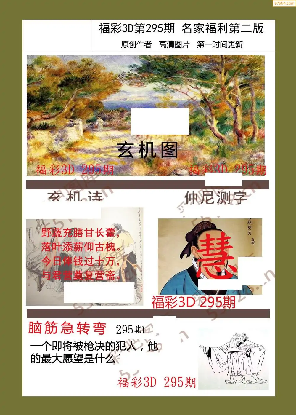 25年295期3d选号彩报图谜画谜