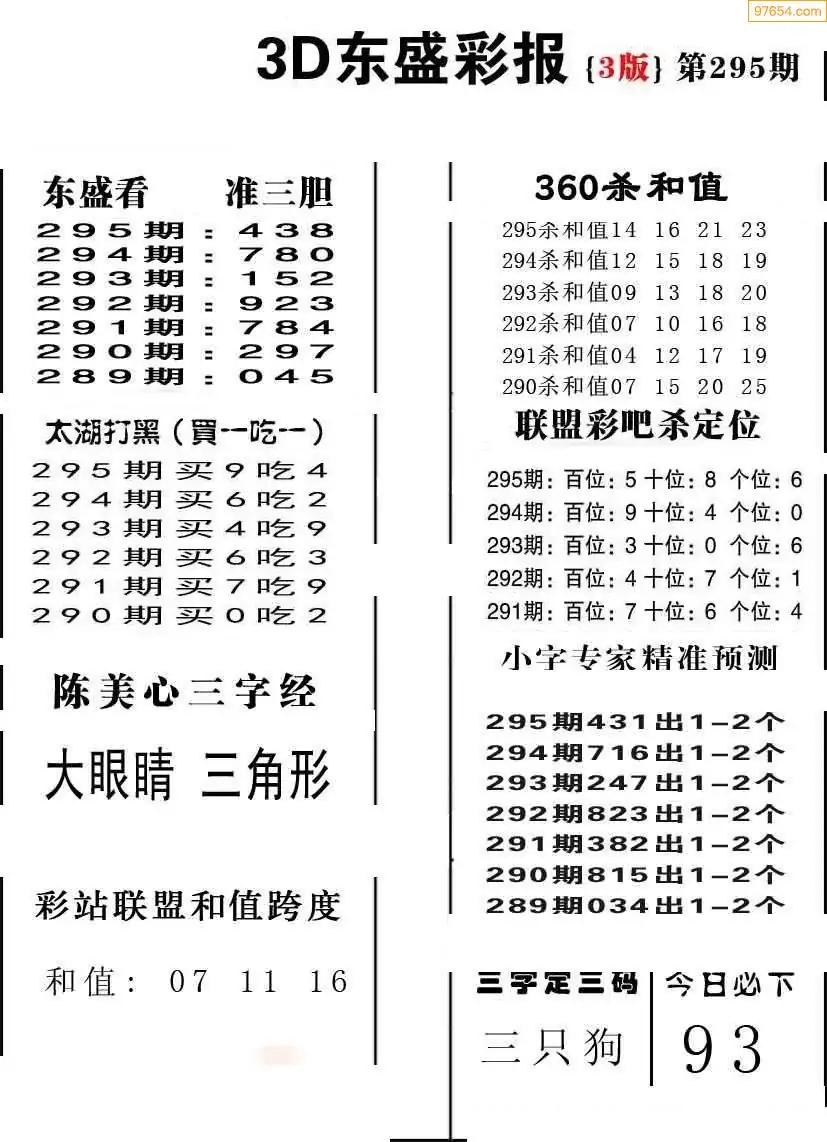 25295期今日3d三毛四版+东盛会员报