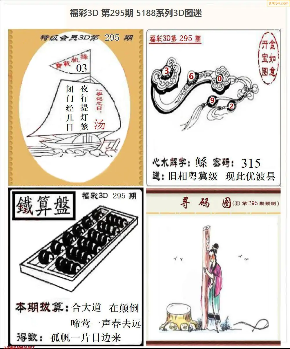 福彩3D295期天牛彩吧套图整合总汇