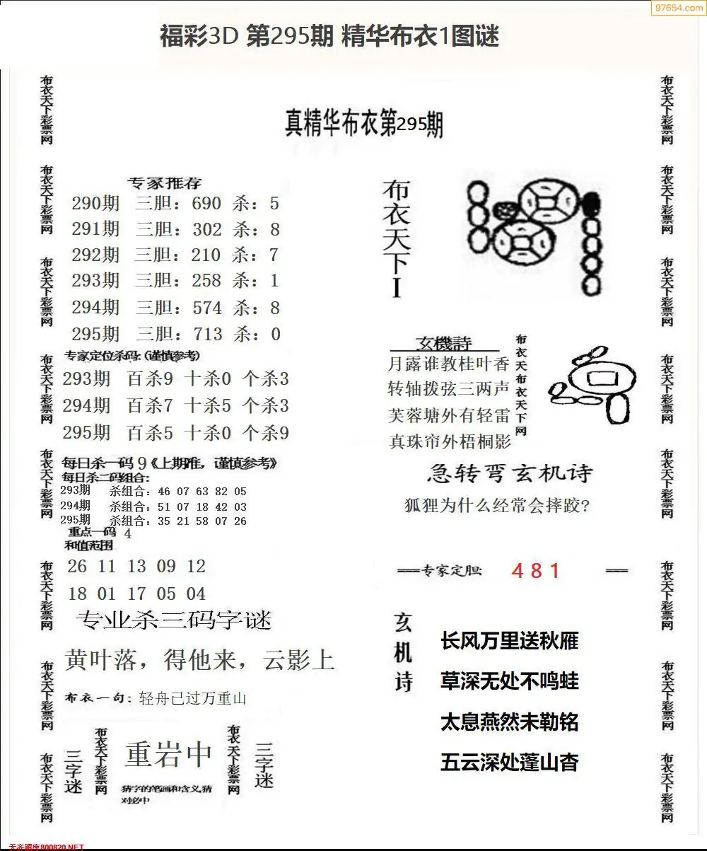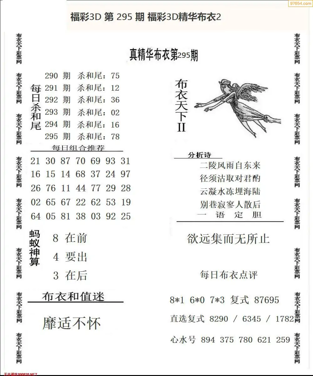 福彩295期3d真精华布衣+布衣早报(转载)
