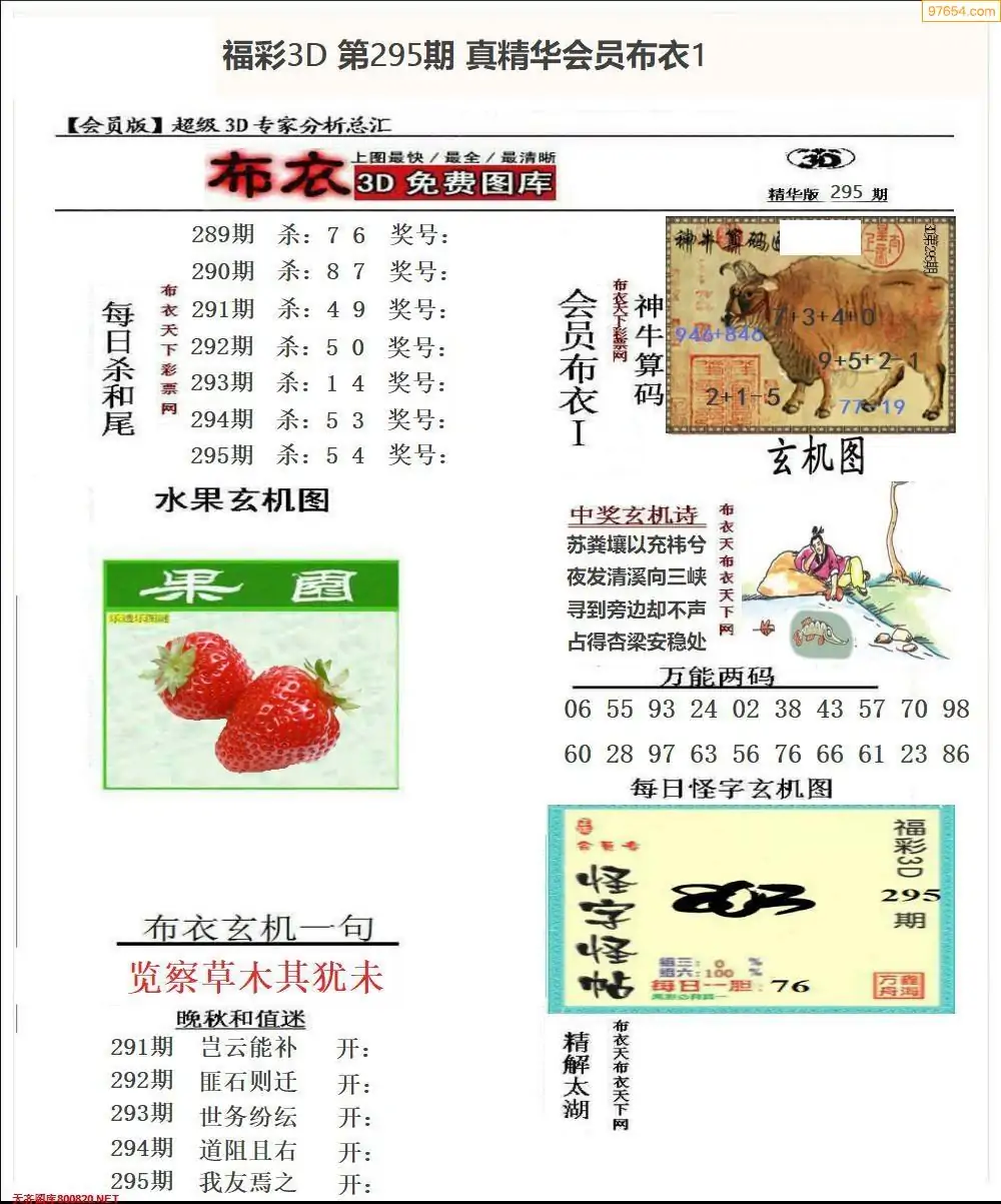 2025295期会员布衣3d图库