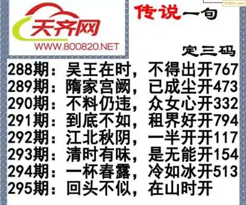 295期3D晚秋(和值)谜:拾衣雨衣 D:衣顺之后