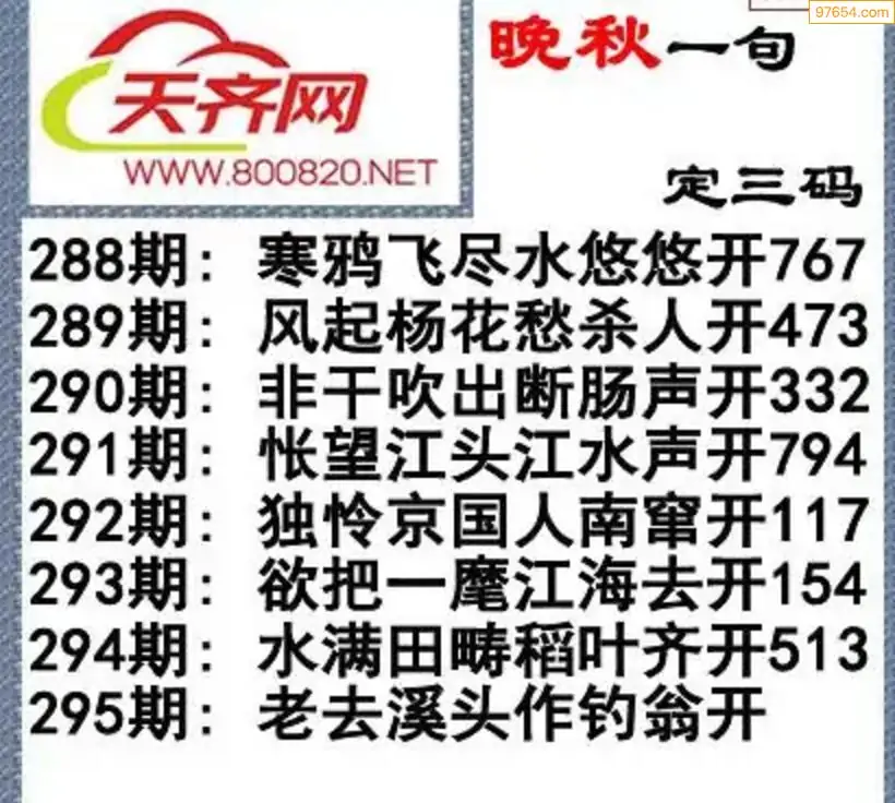 295期3D晚秋(乙种和值)谜:本日砍福 D:差点到头
