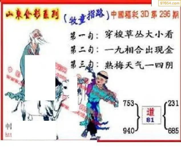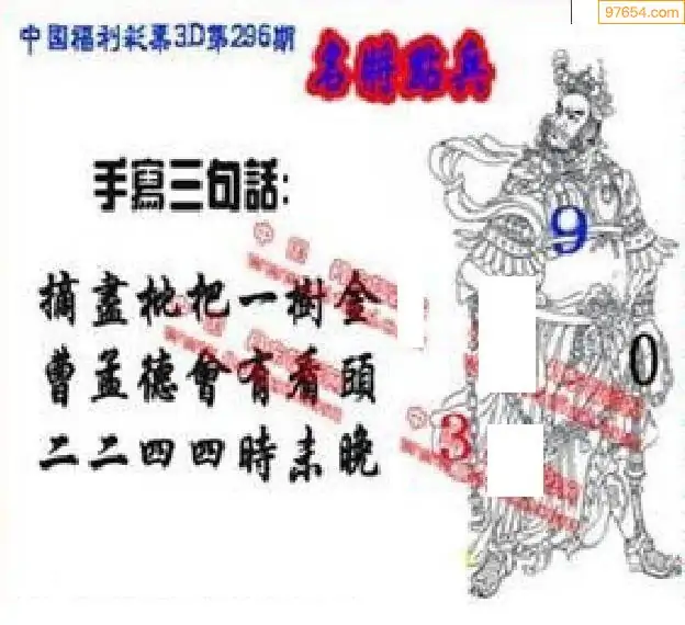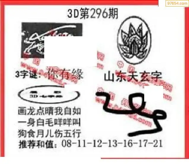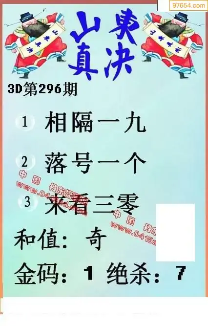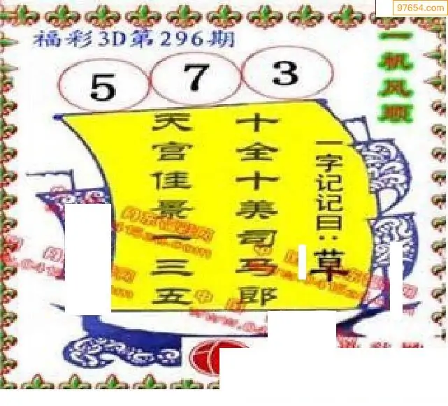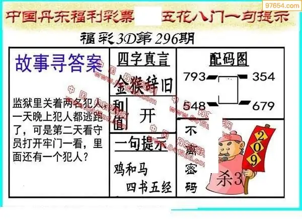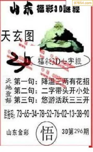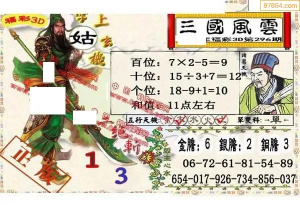 25296期福彩3D正版天宇和值谜