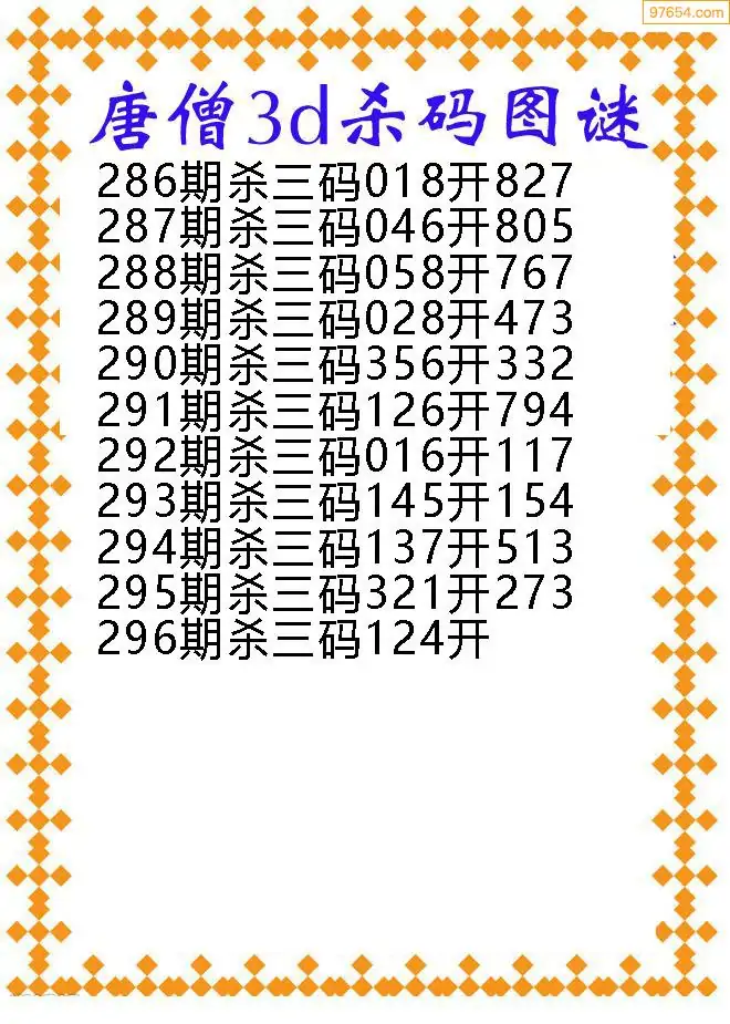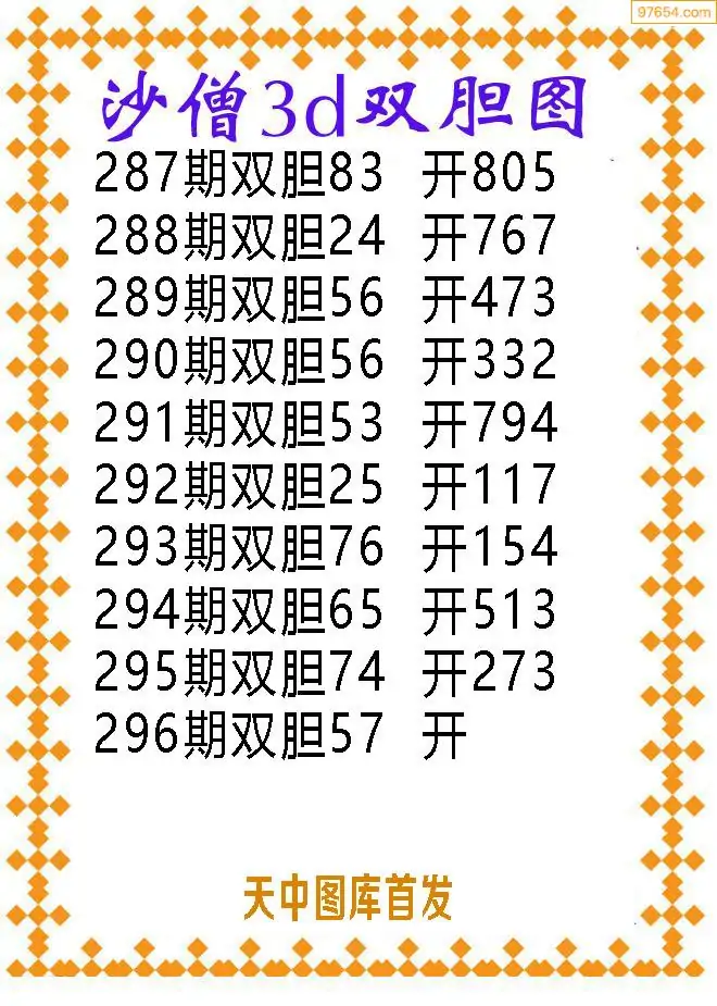 296期97654本站收集胆码出号预测