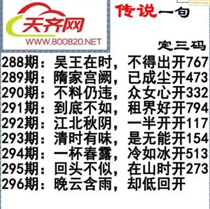 福彩3d25年296期字谜传说一句定三码