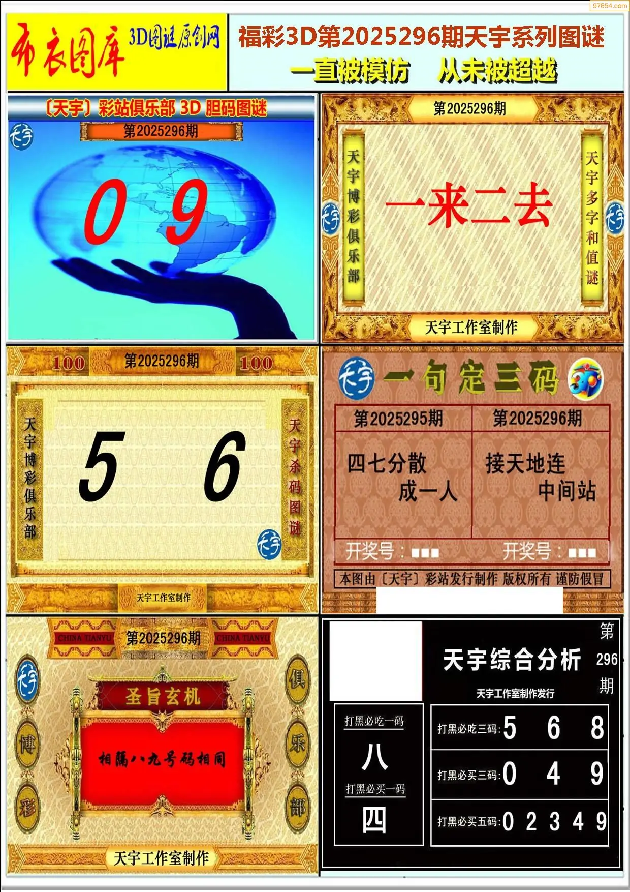 25296期福彩3D正版天宇和值谜