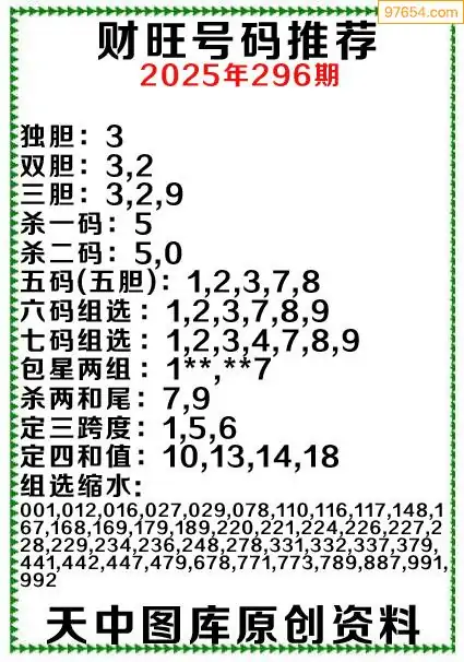 (3)2025296期3D预测总汇全图