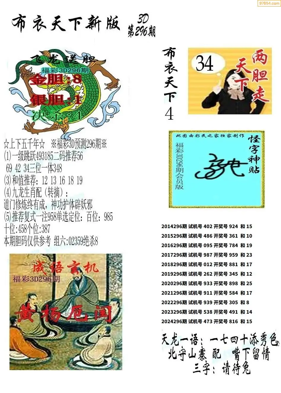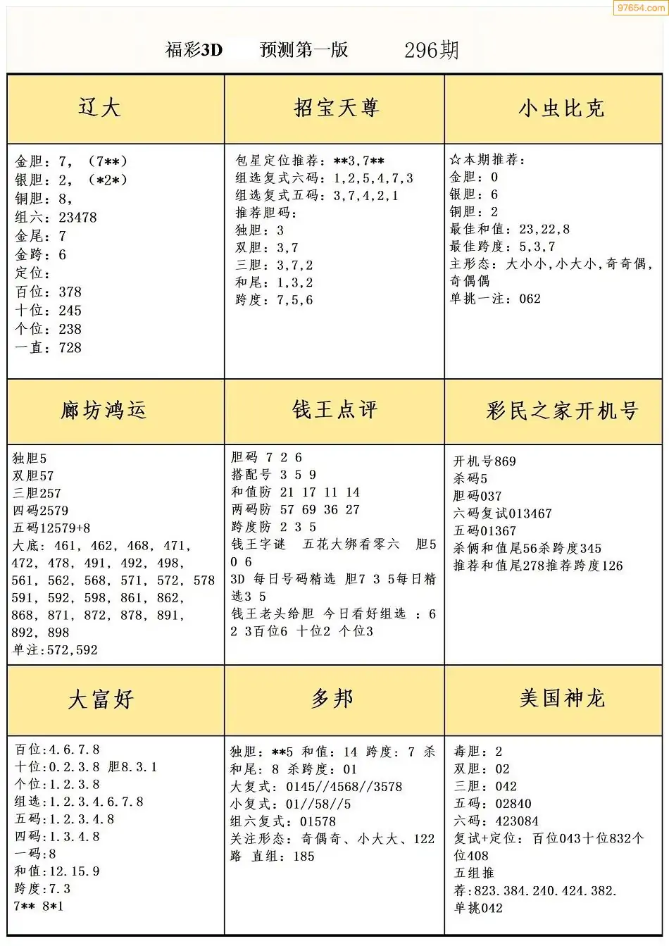 (8)25年296期今日3d各类彩报汇总
