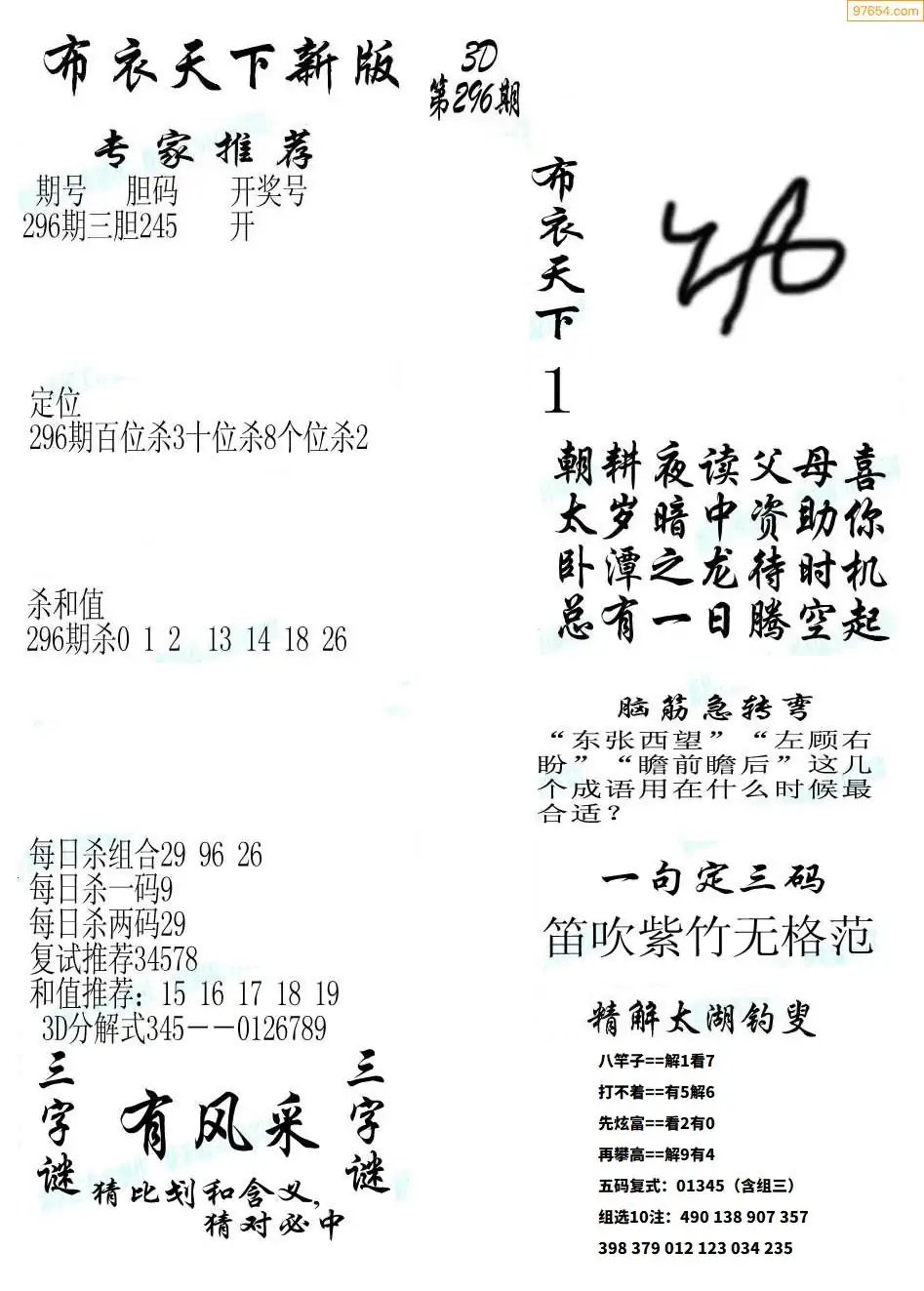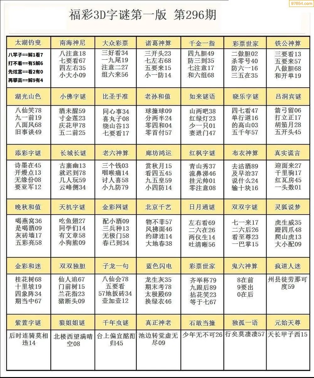 (5)25年296期福彩字谜图谜总汇