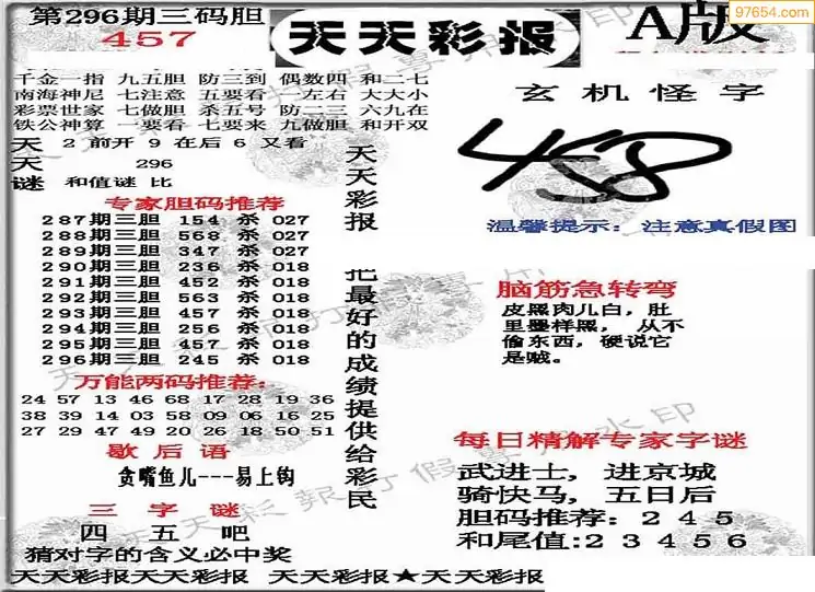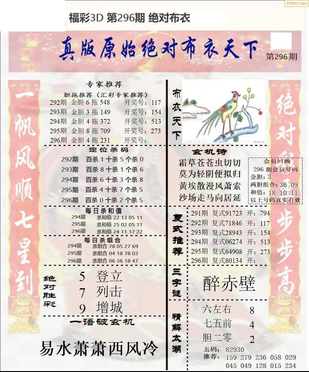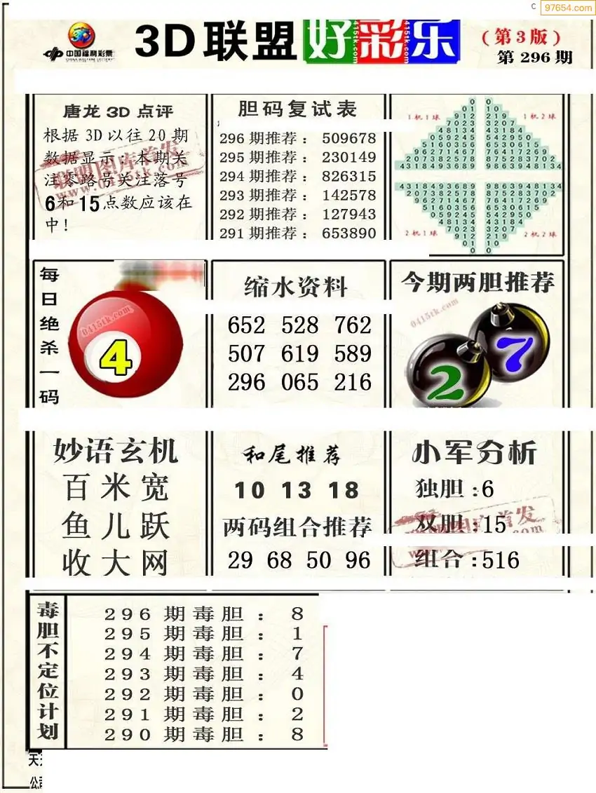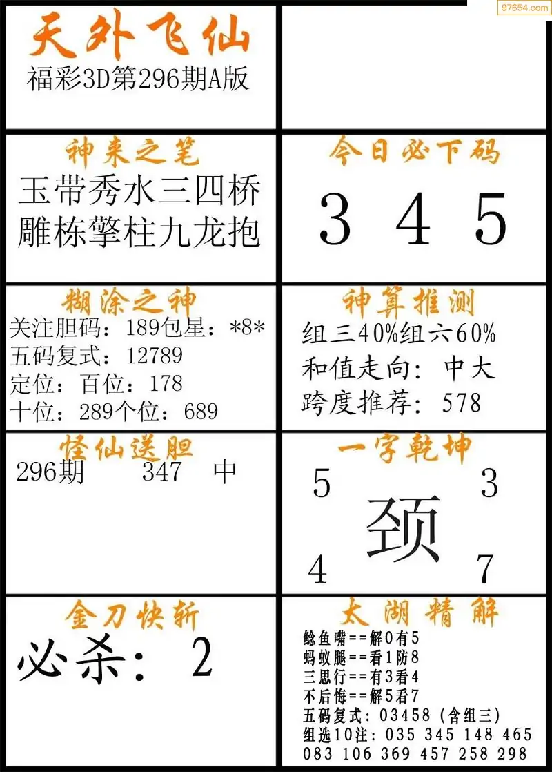 (8)25年296期今日3d各类彩报汇总