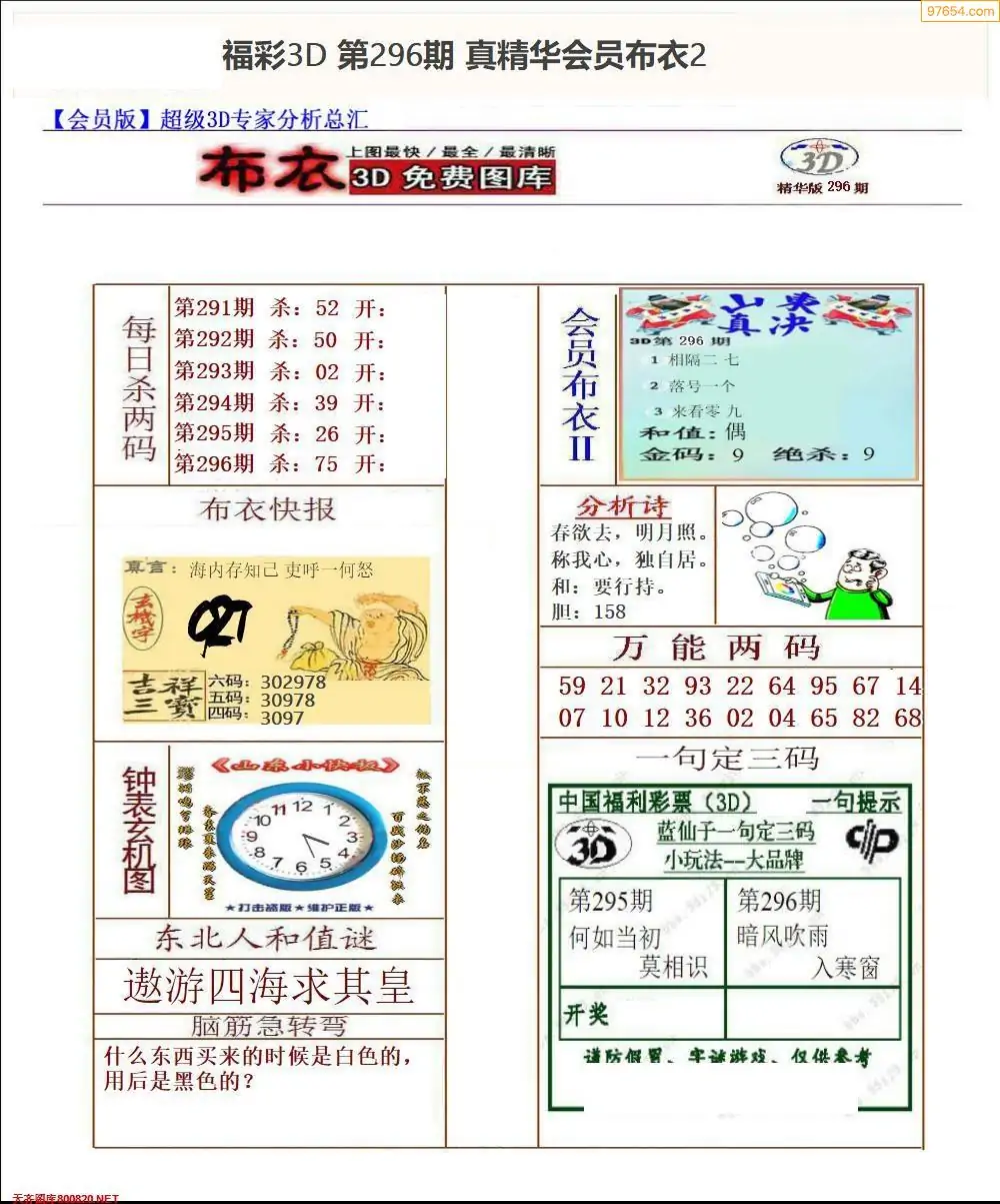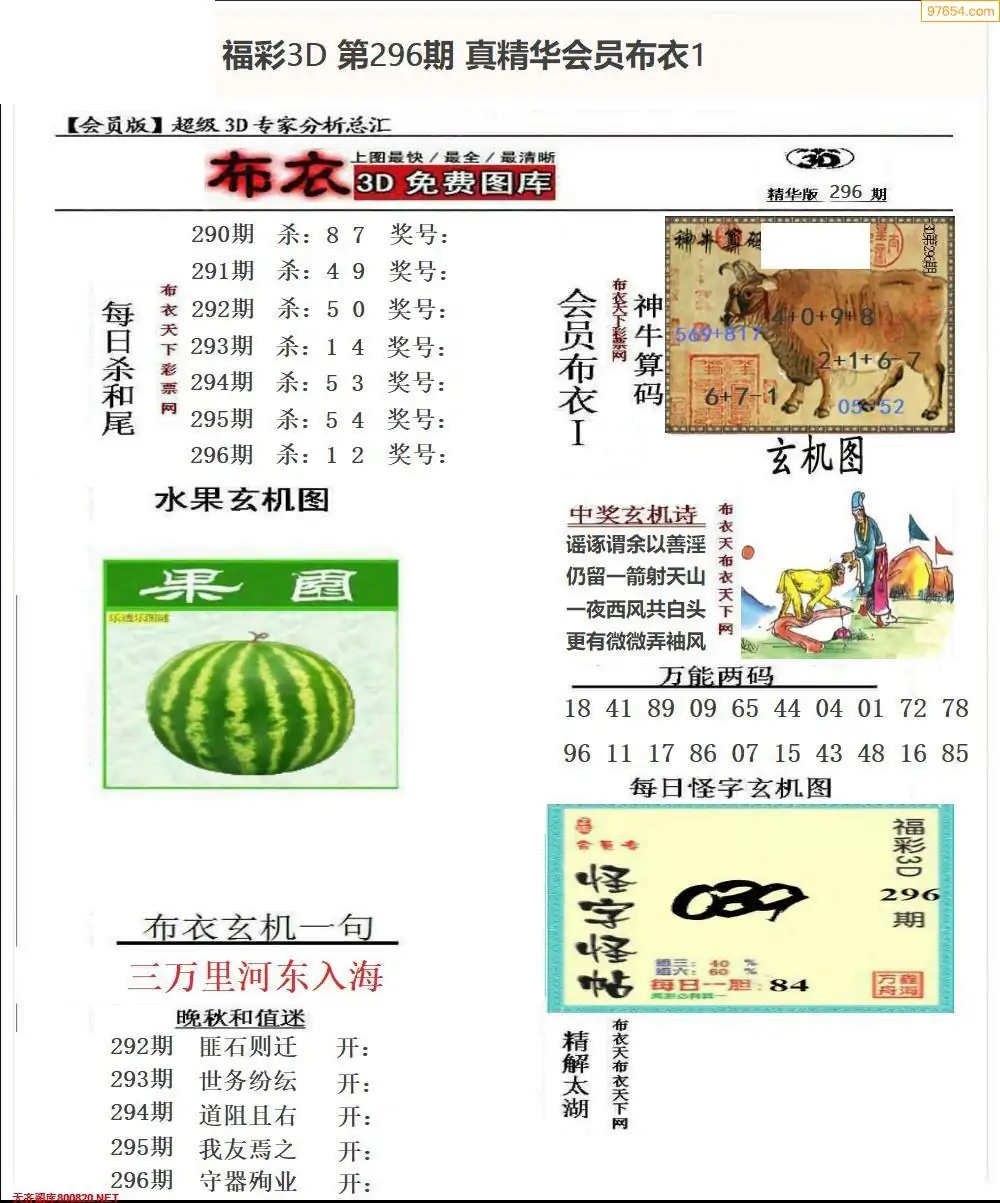 (1)25年296期今日3d图谜总汇