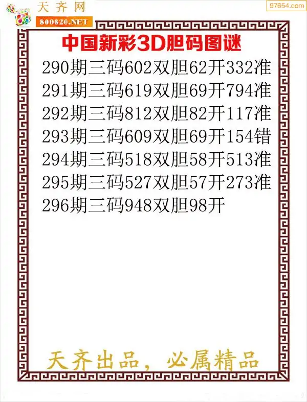 2025296期彩彩网3d原创图迷搜集(天中整理)