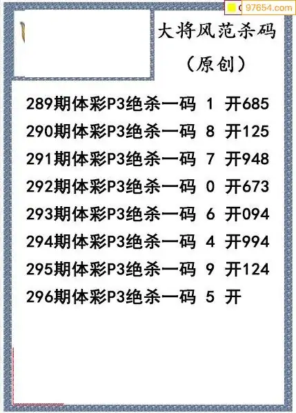 25年296期大将风范p3杀码体彩图谜