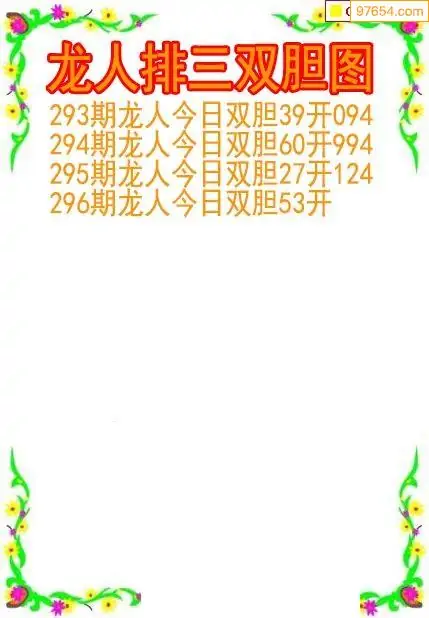 25296期龙人排列3双胆图