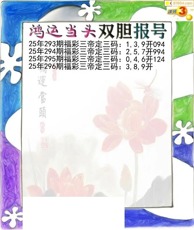 25296期鸿运当头双胆p3报号图