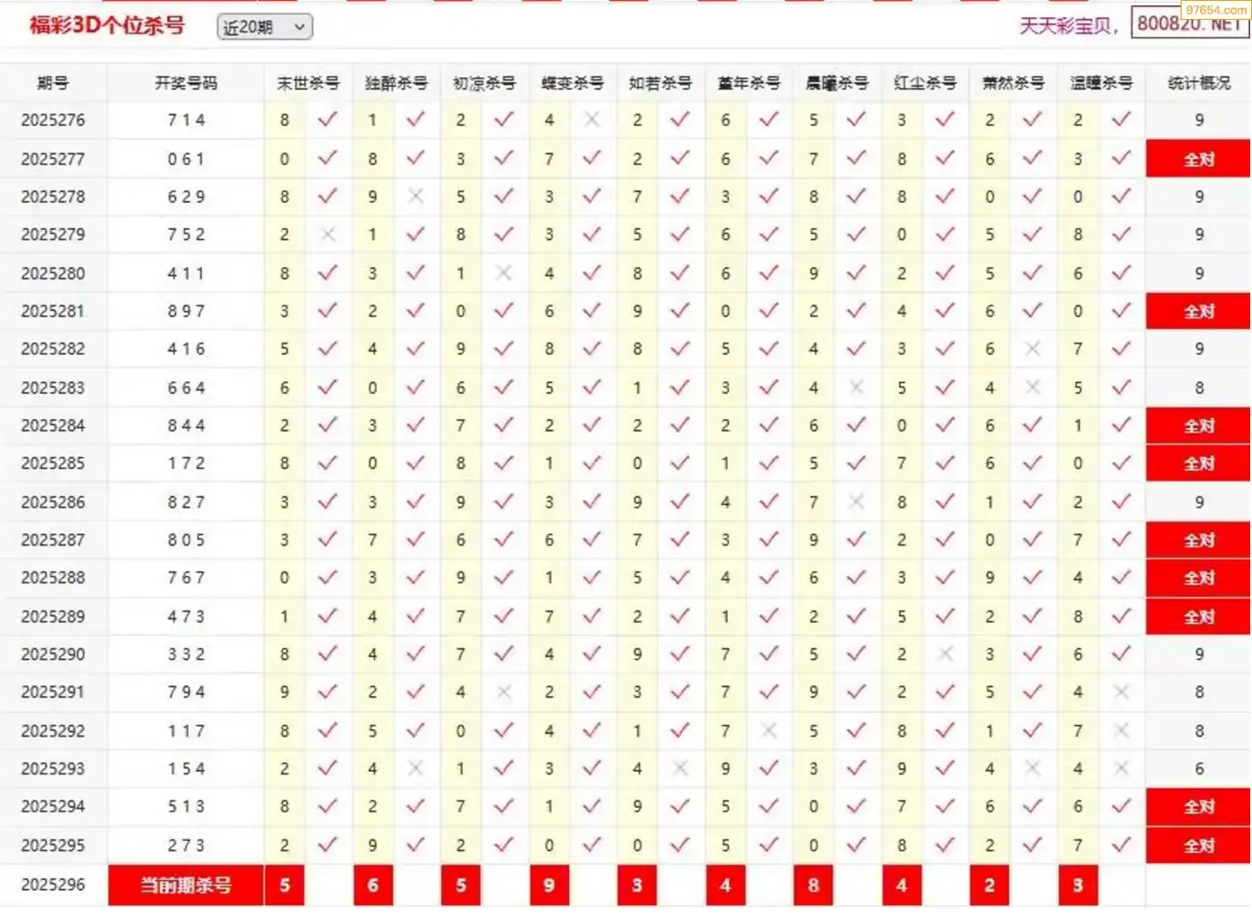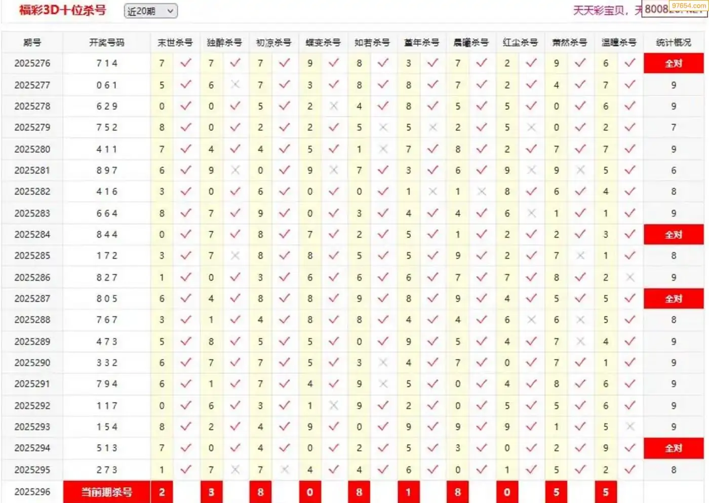 3D297期天中财神原创杀码条件汇总