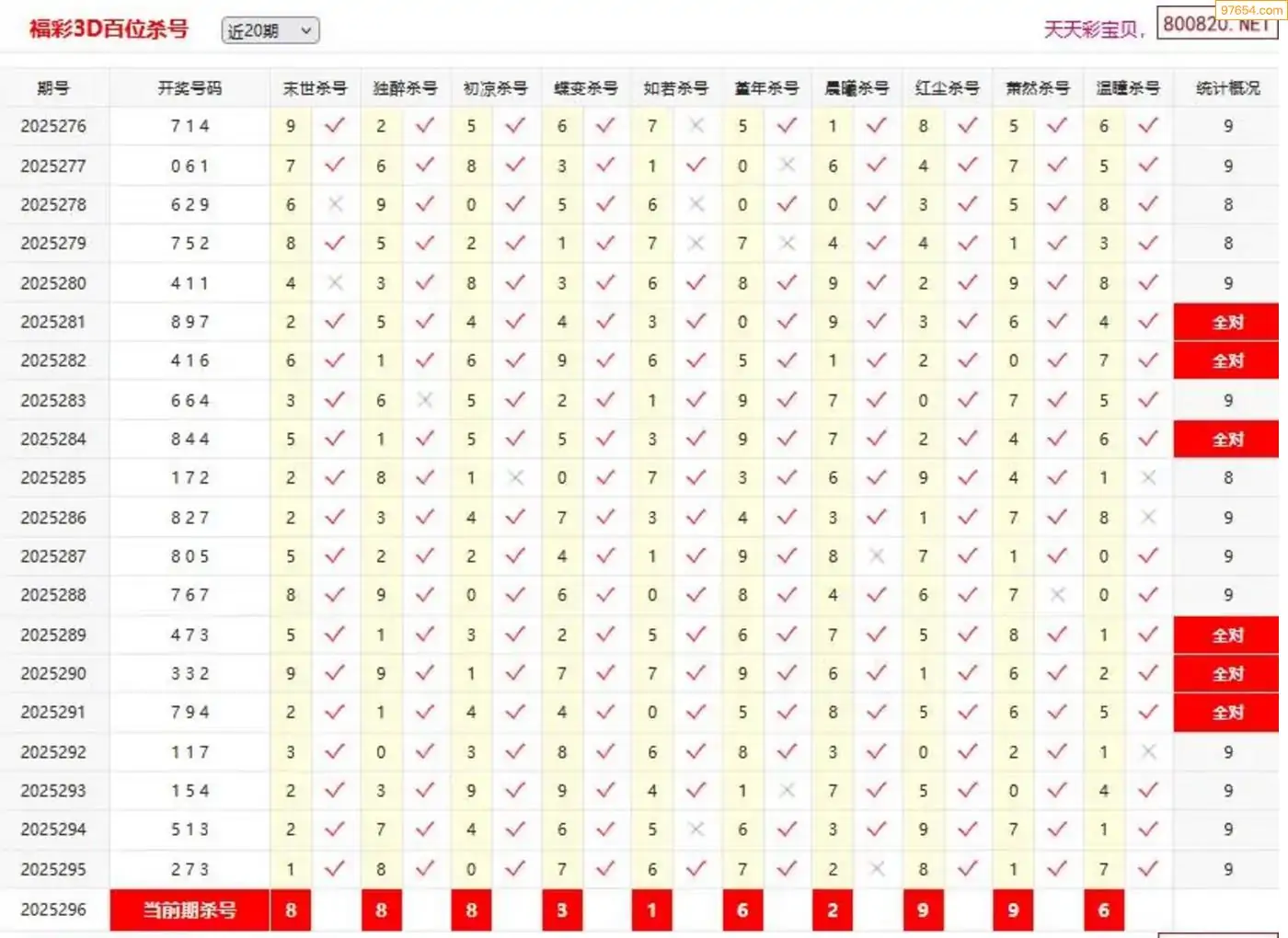 胡八一3d25年297期杀号一胆 9连中