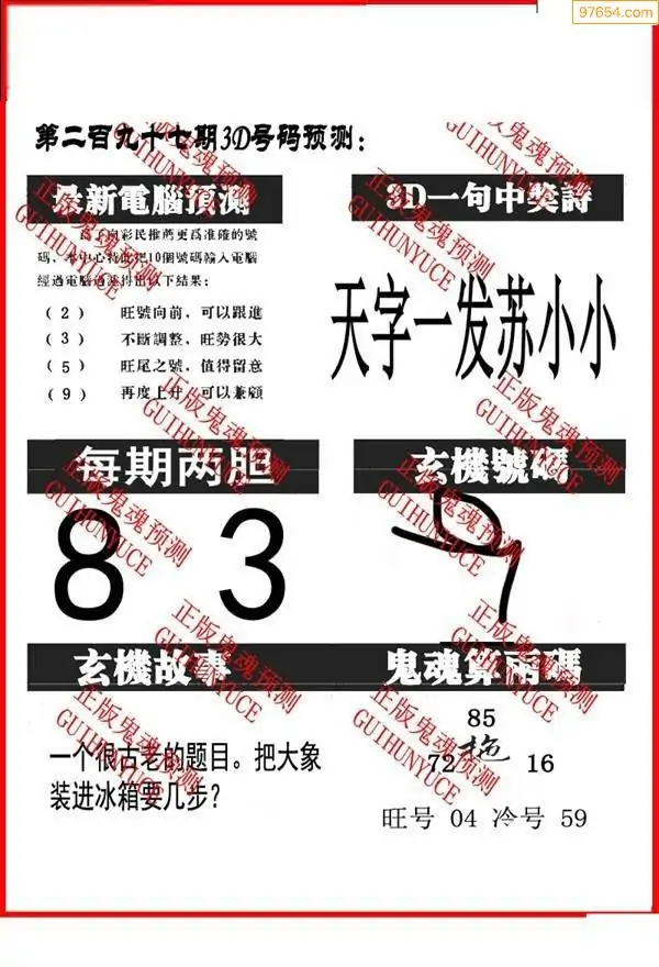 (8)25年297期今日3d各类彩报汇总