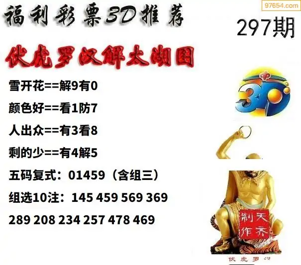 25297期福彩3D正版天宇和值谜