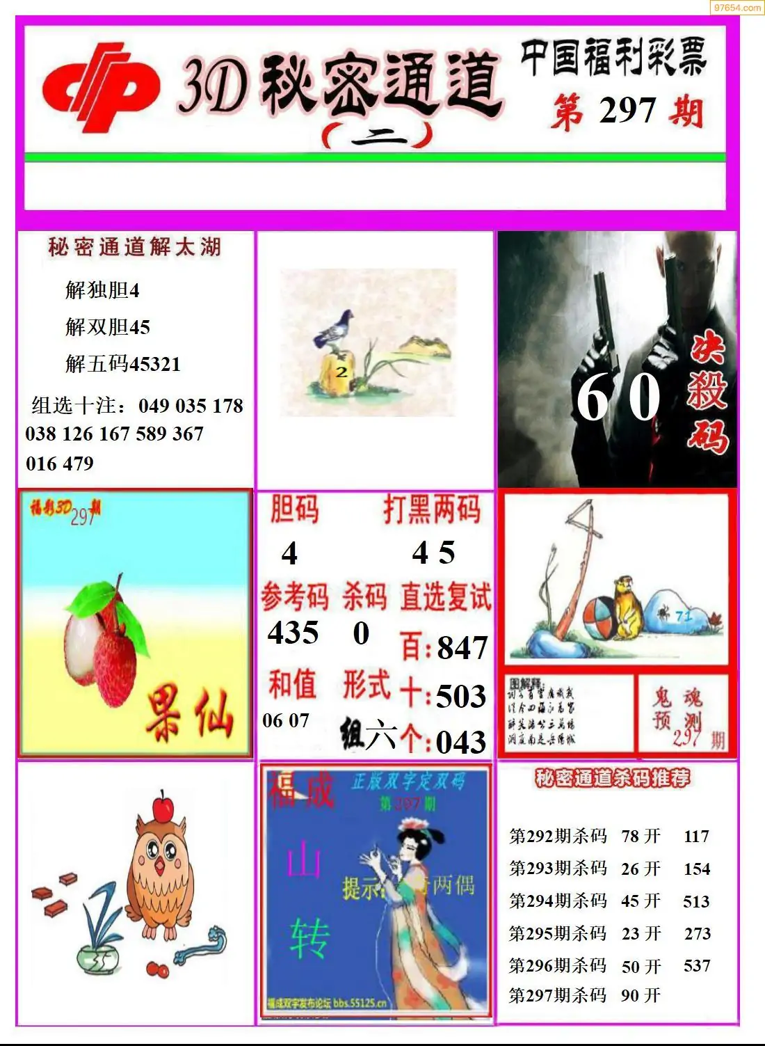25年297期秘密通道福彩3D图谜版AB