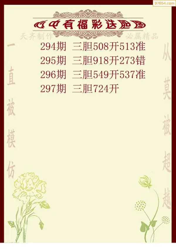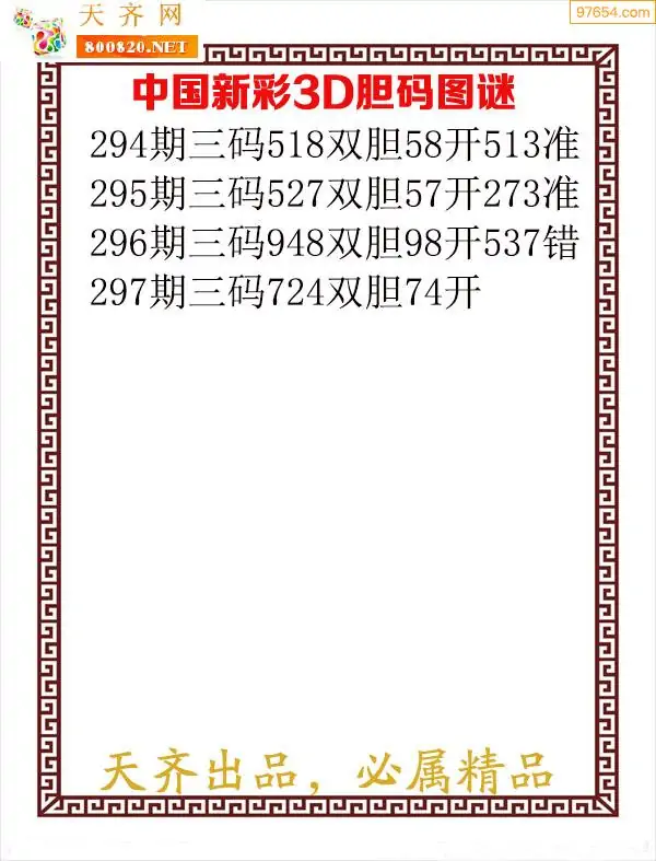 天齐网3d25年297期胆码图 胆:97
