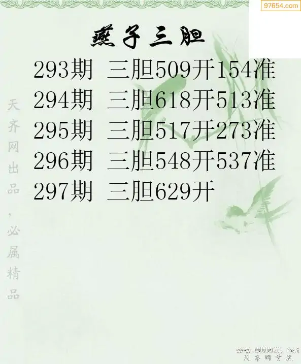 297期97654本站收集胆码出号预测