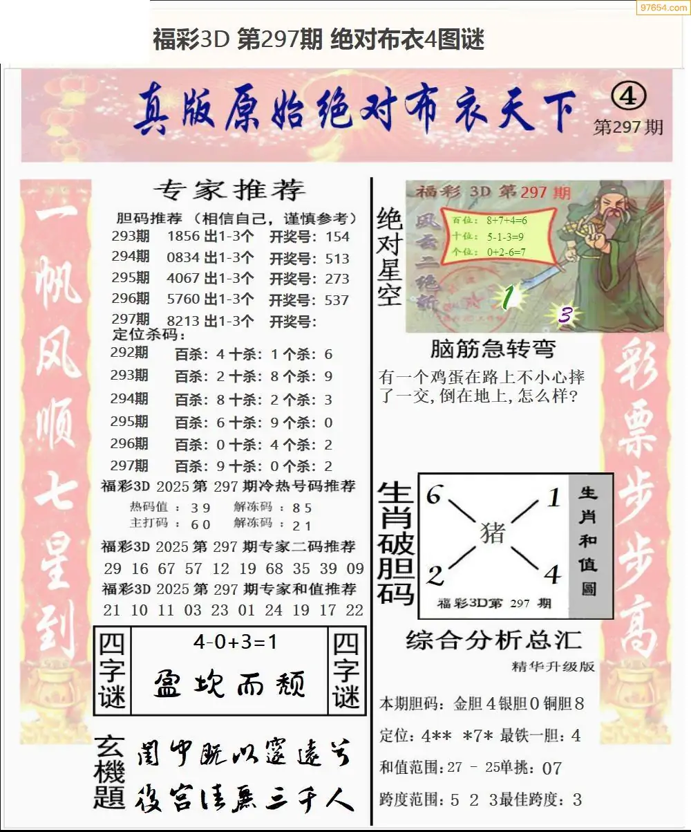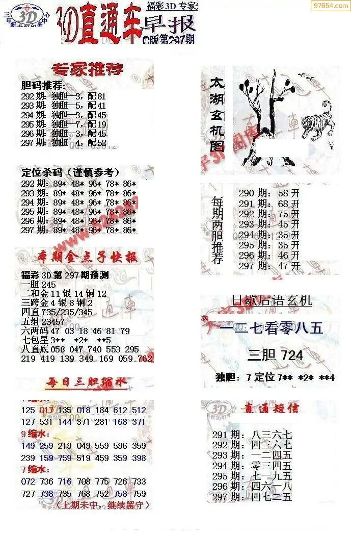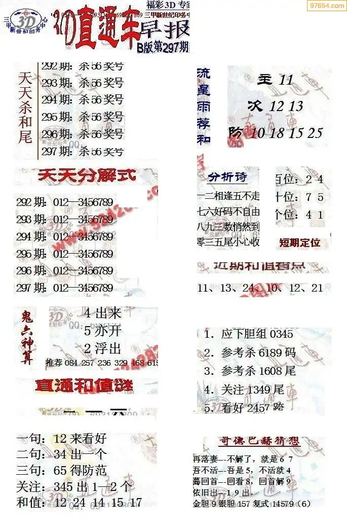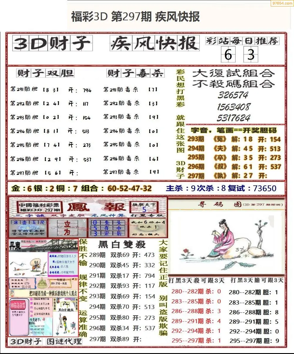 25年297期3d选号彩报图谜画谜