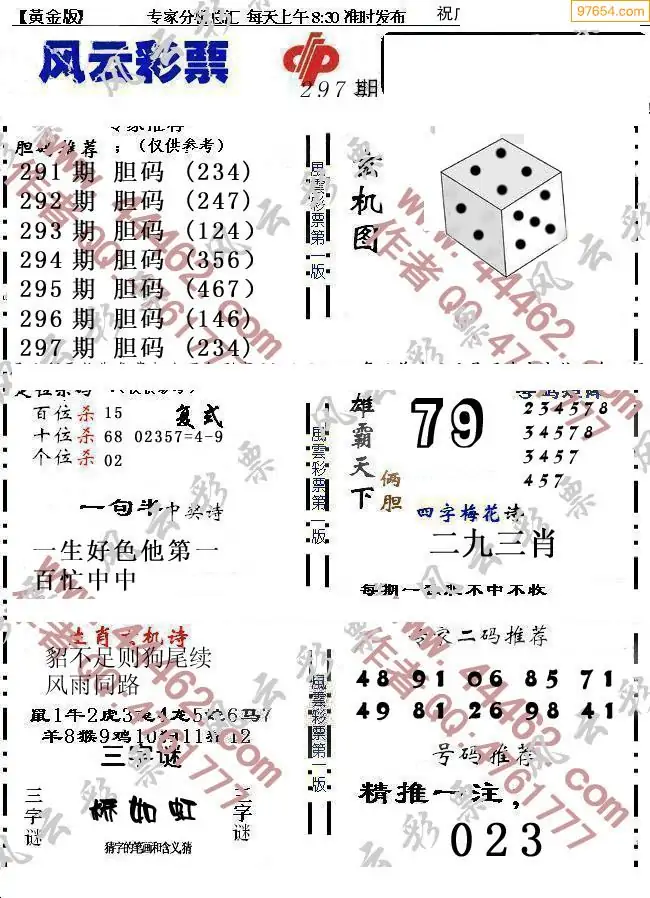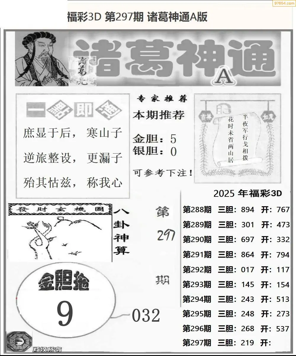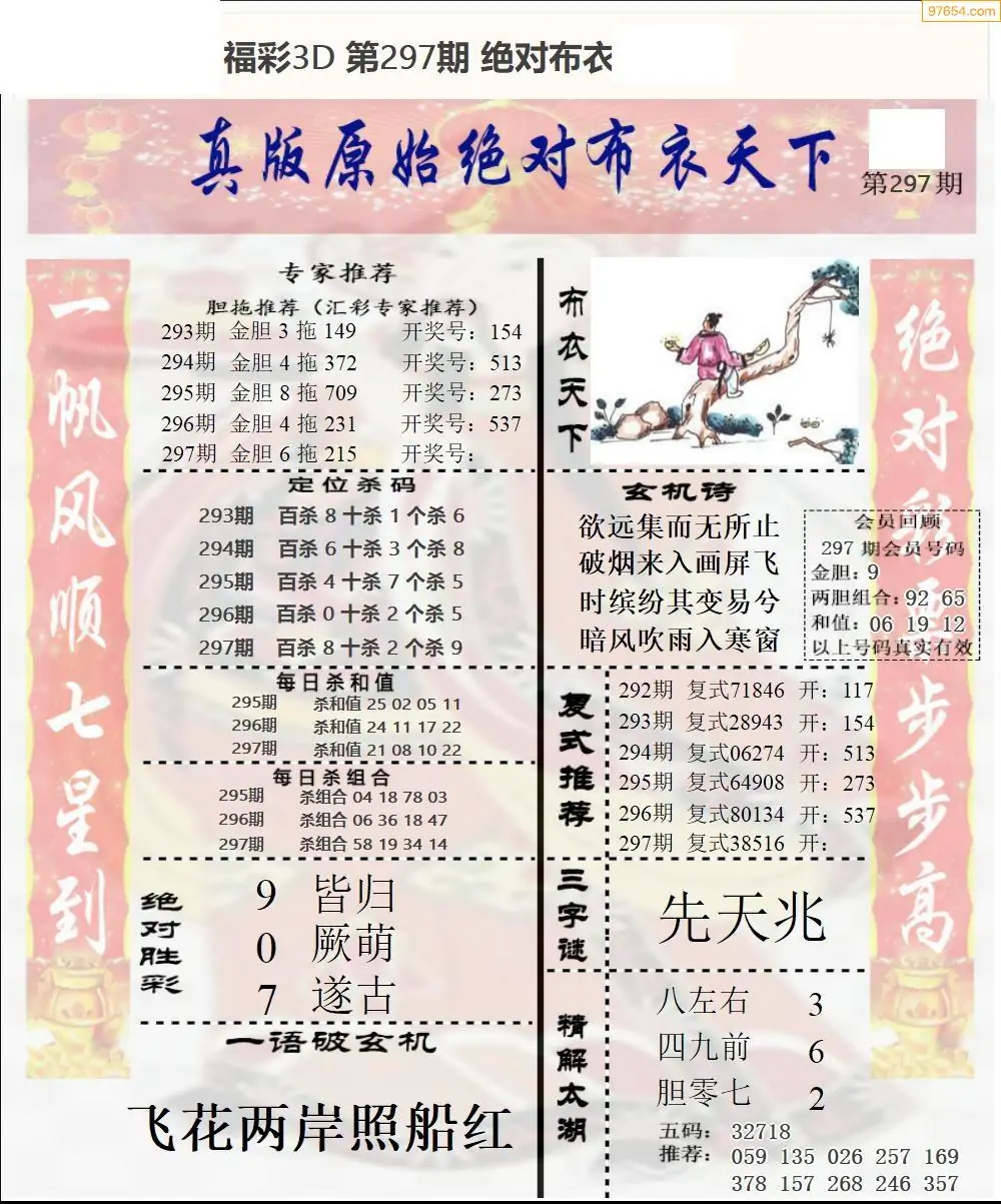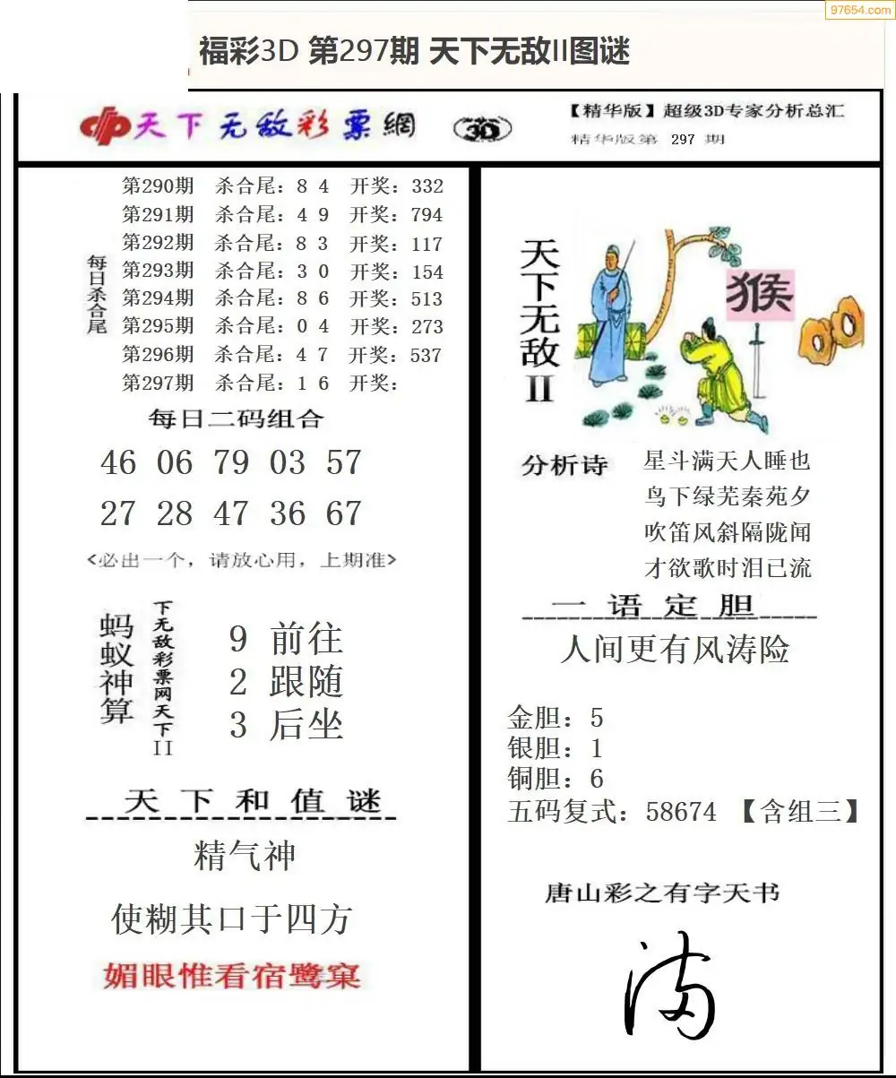 25年297期3d选号彩报图谜画谜