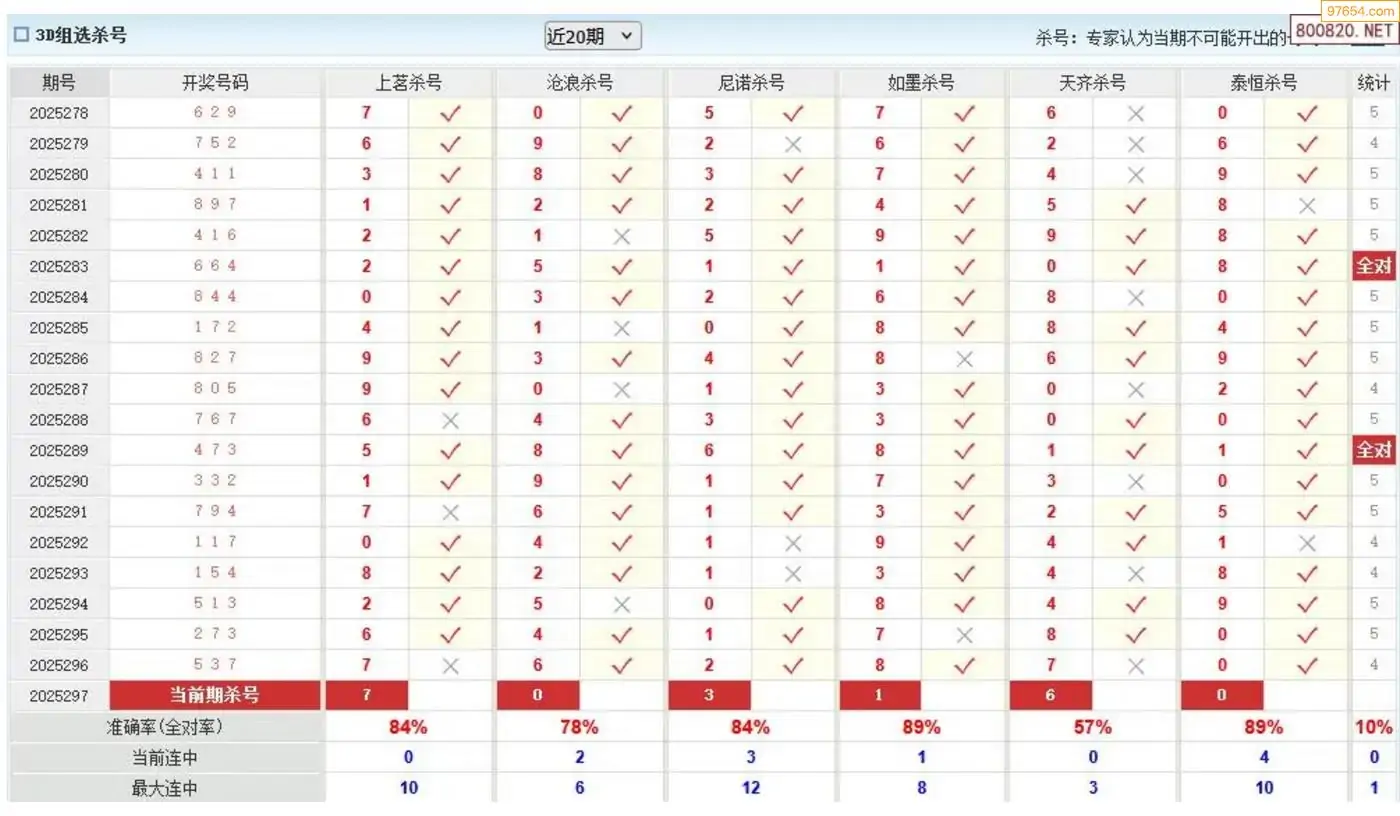 3D298期天中财神原创杀码条件汇总