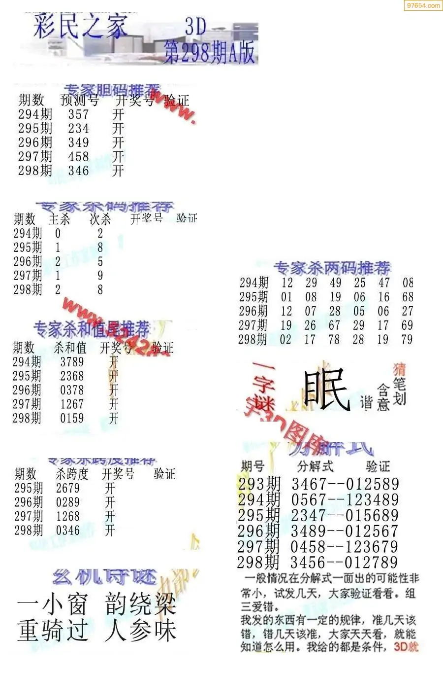 25298期3D彩民各类资料A版