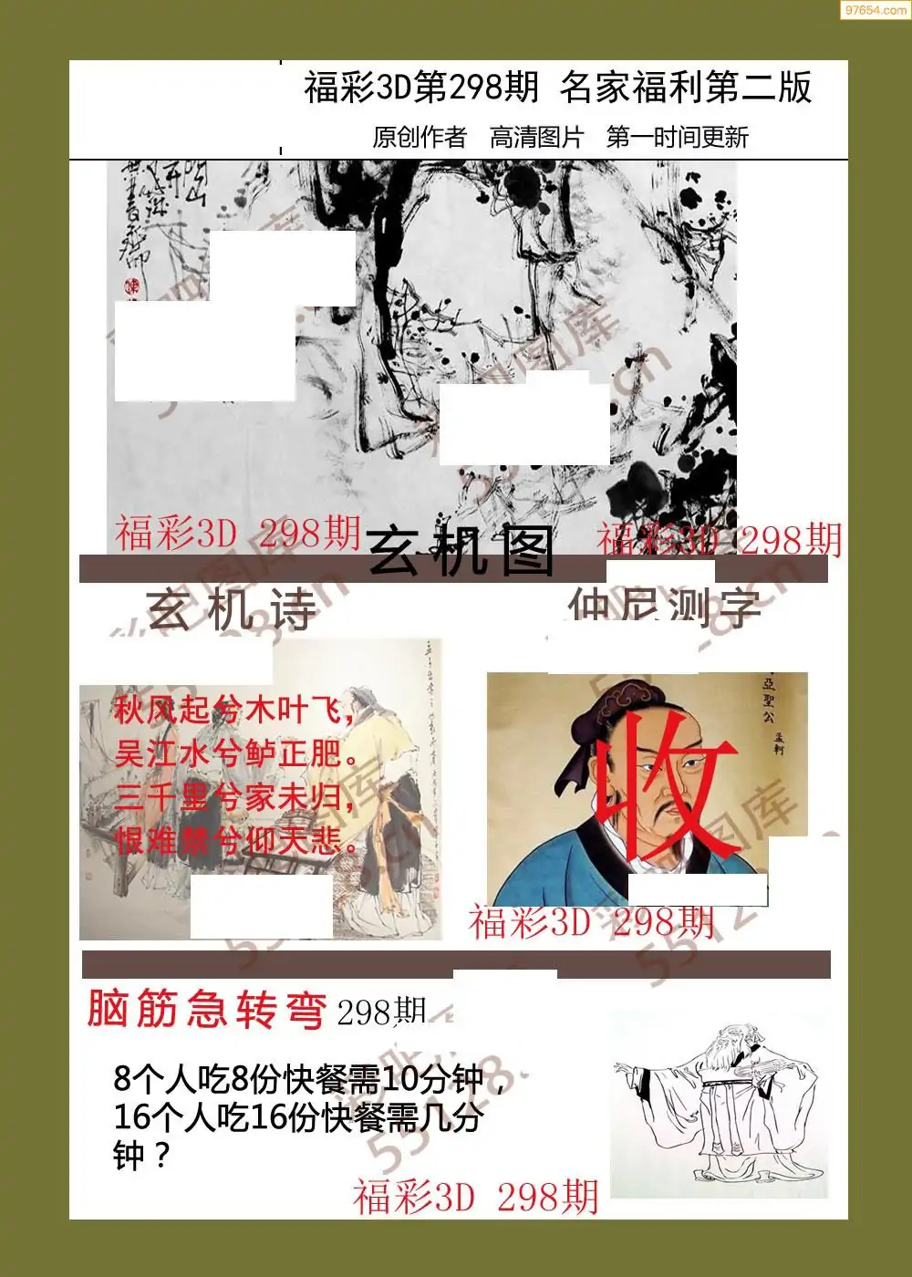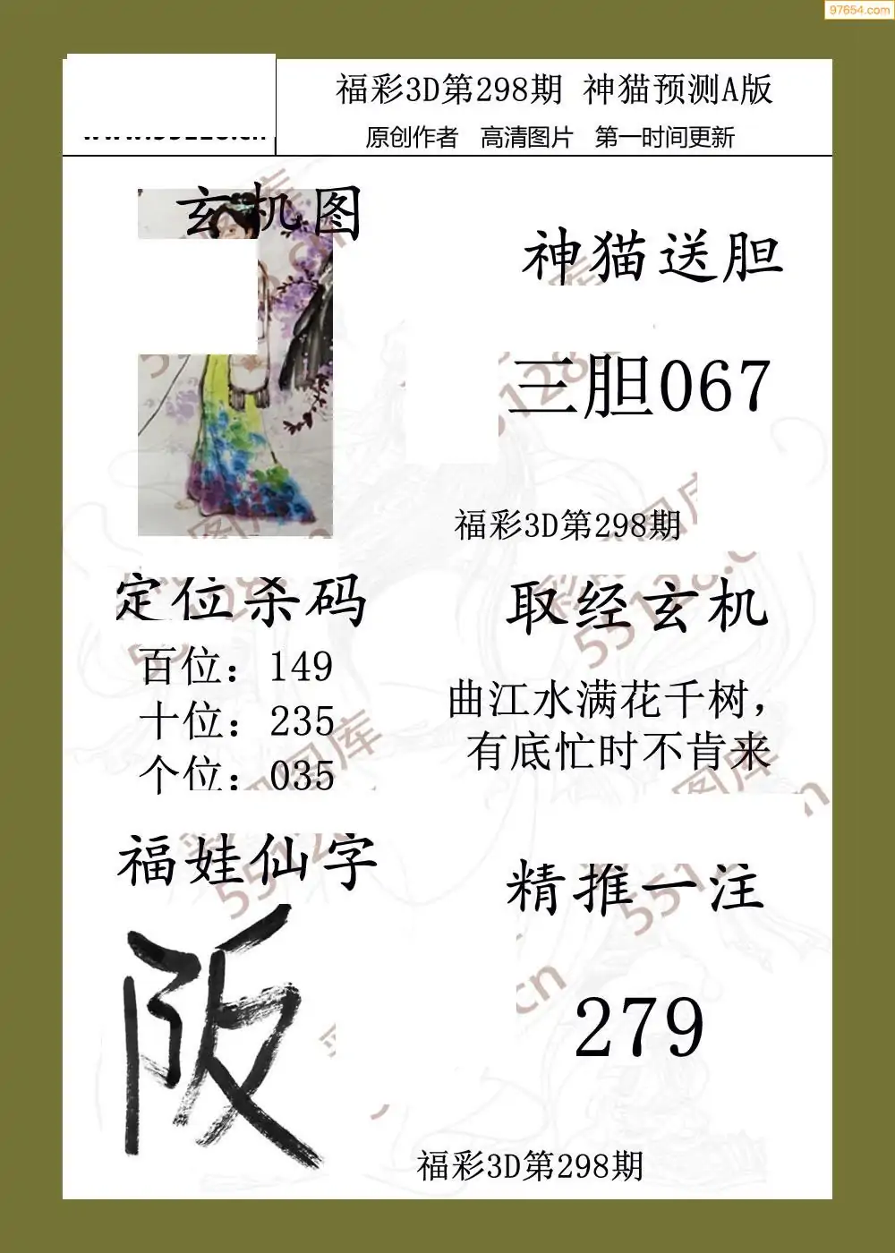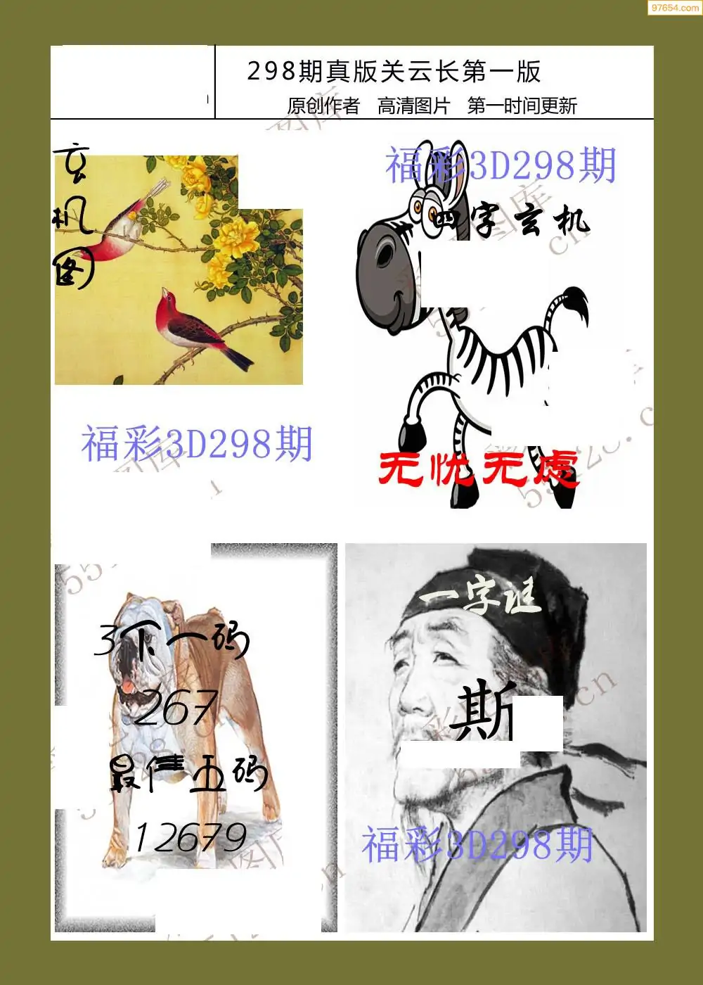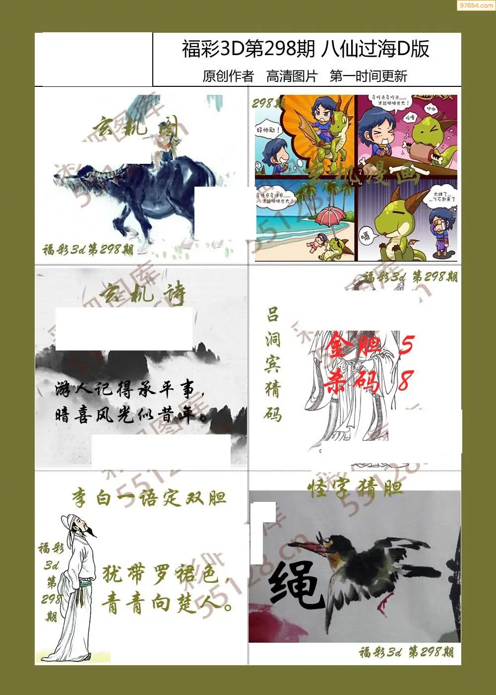 福彩3D298期天牛彩吧套图整合总汇