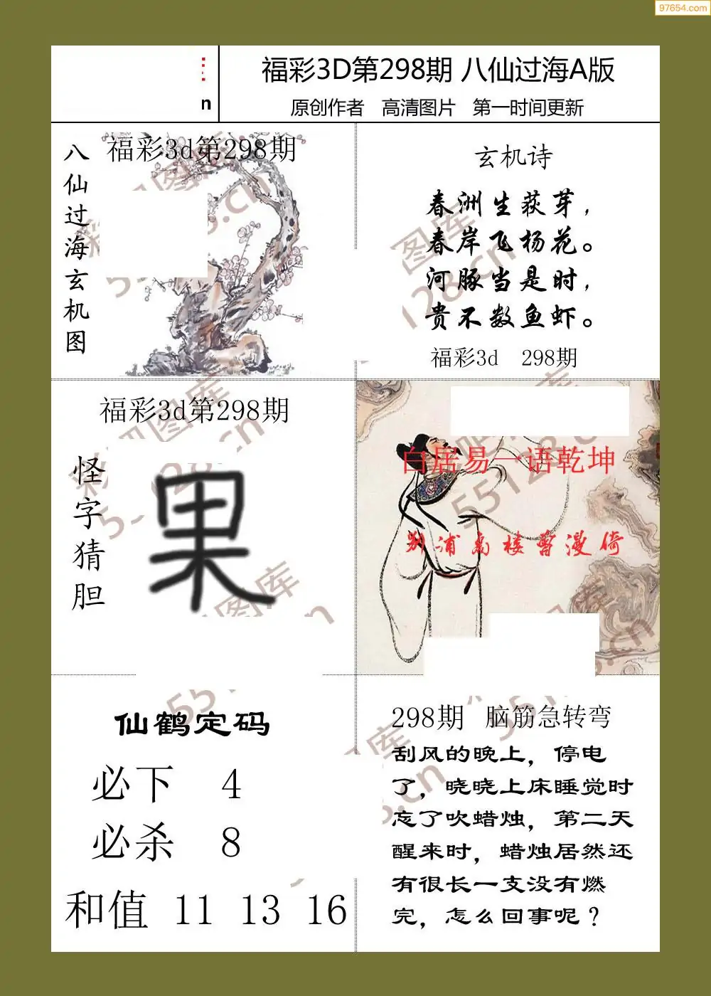 298期福彩天机壁怪字图