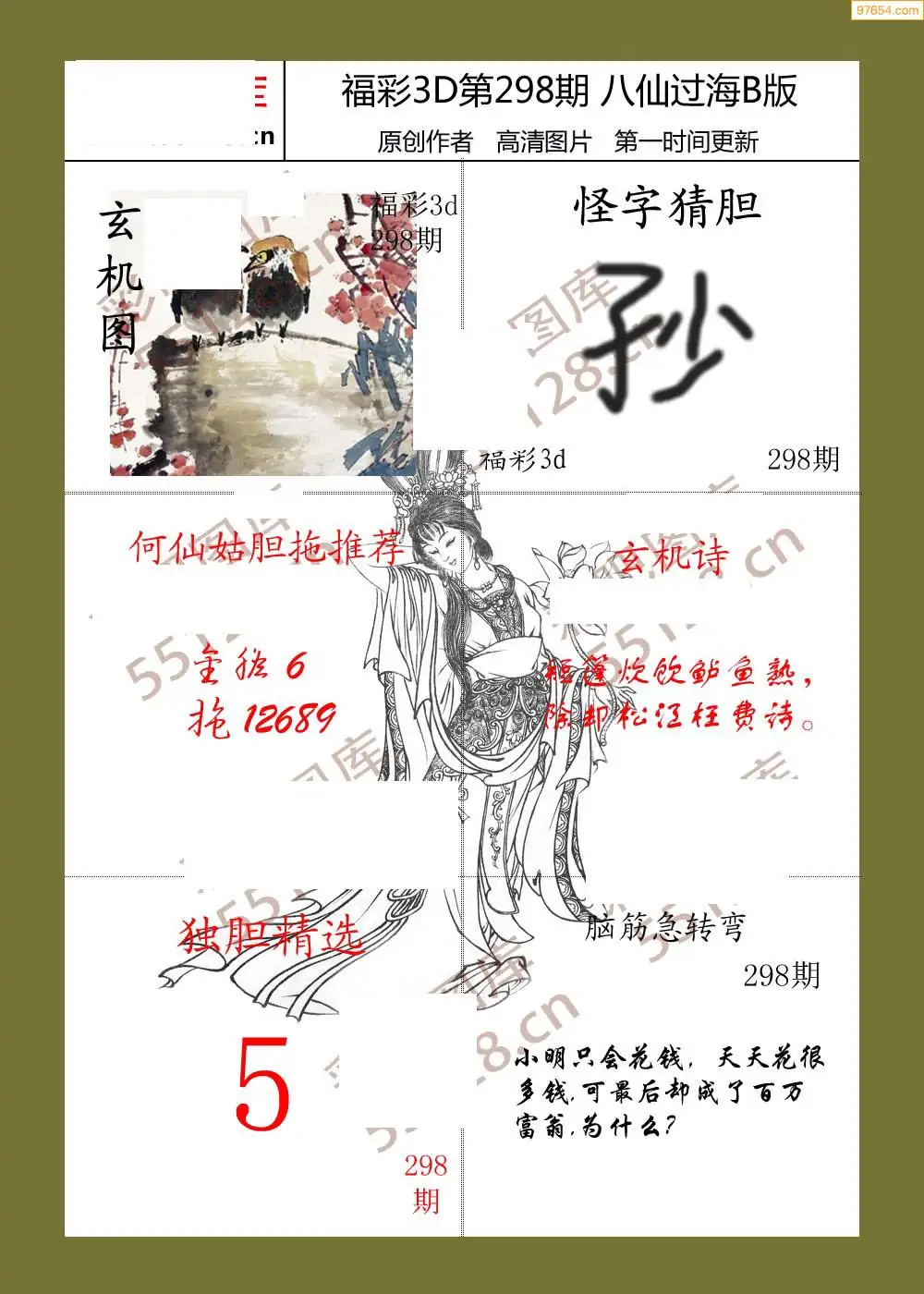 福彩3D25298期蓝仙子一句定三码图谜