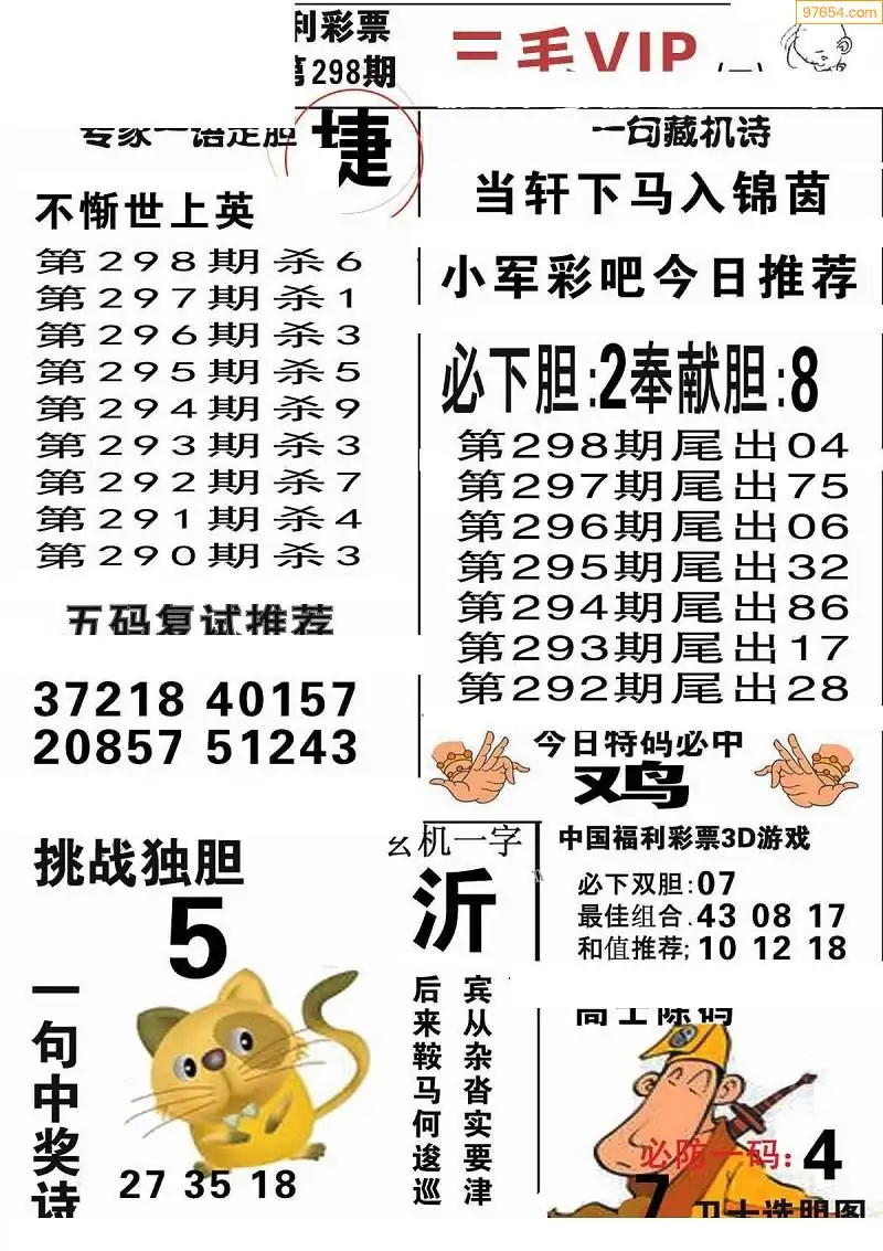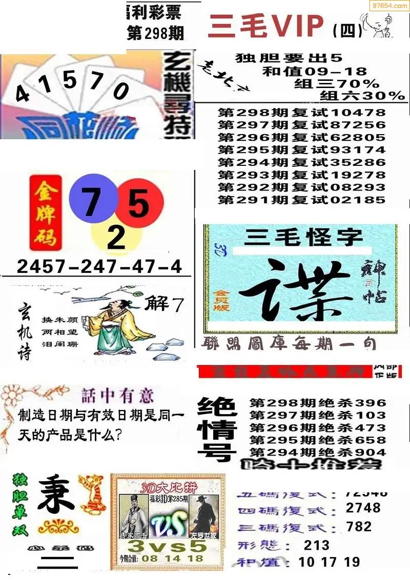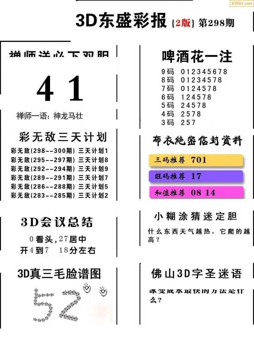 福彩3D298期天牛彩吧套图整合总汇