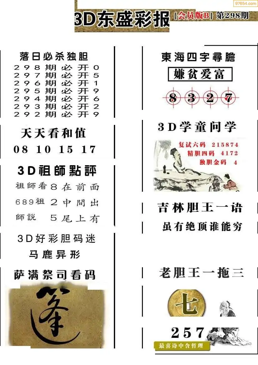 25298期今日3d三毛四版+东盛会员报