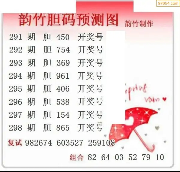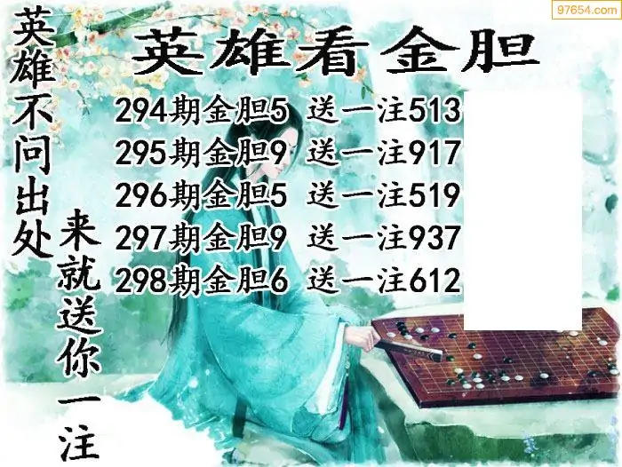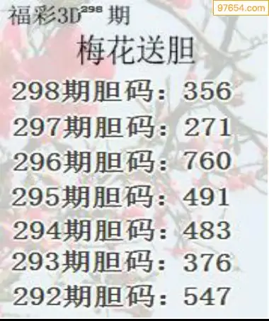 298期97654本站收集胆码出号预测