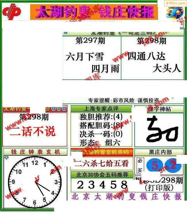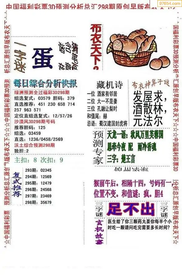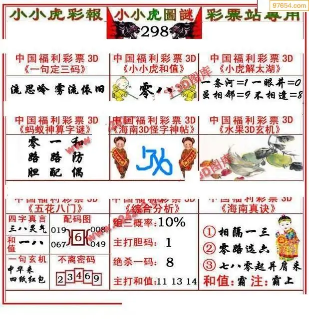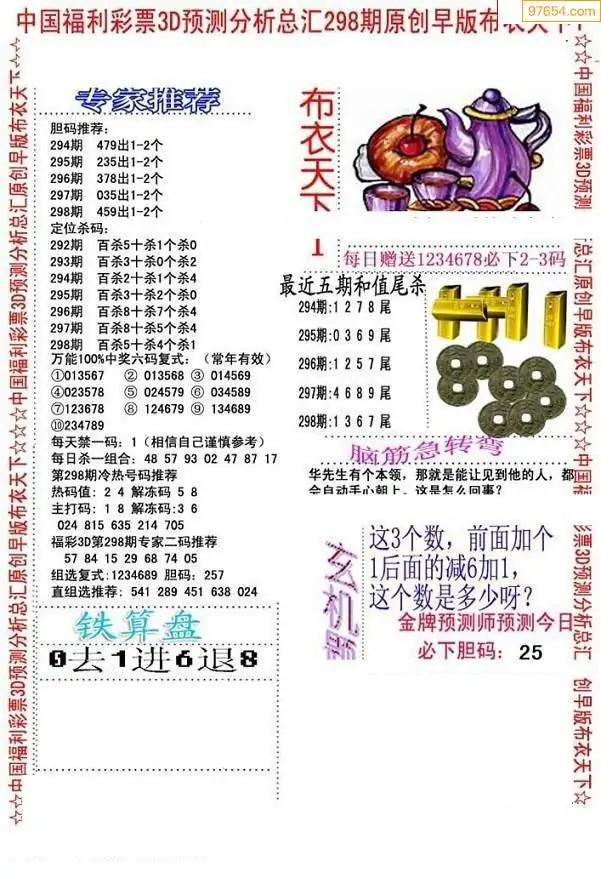 福彩3D298期天牛彩吧套图整合总汇